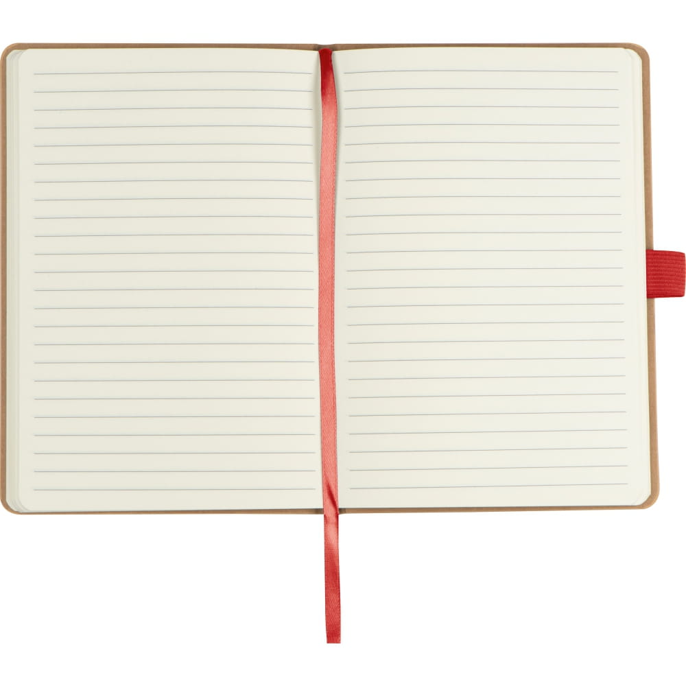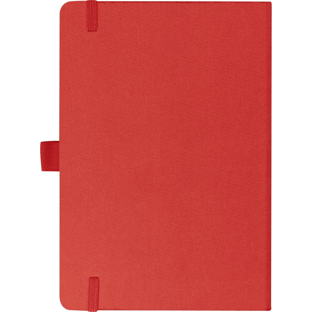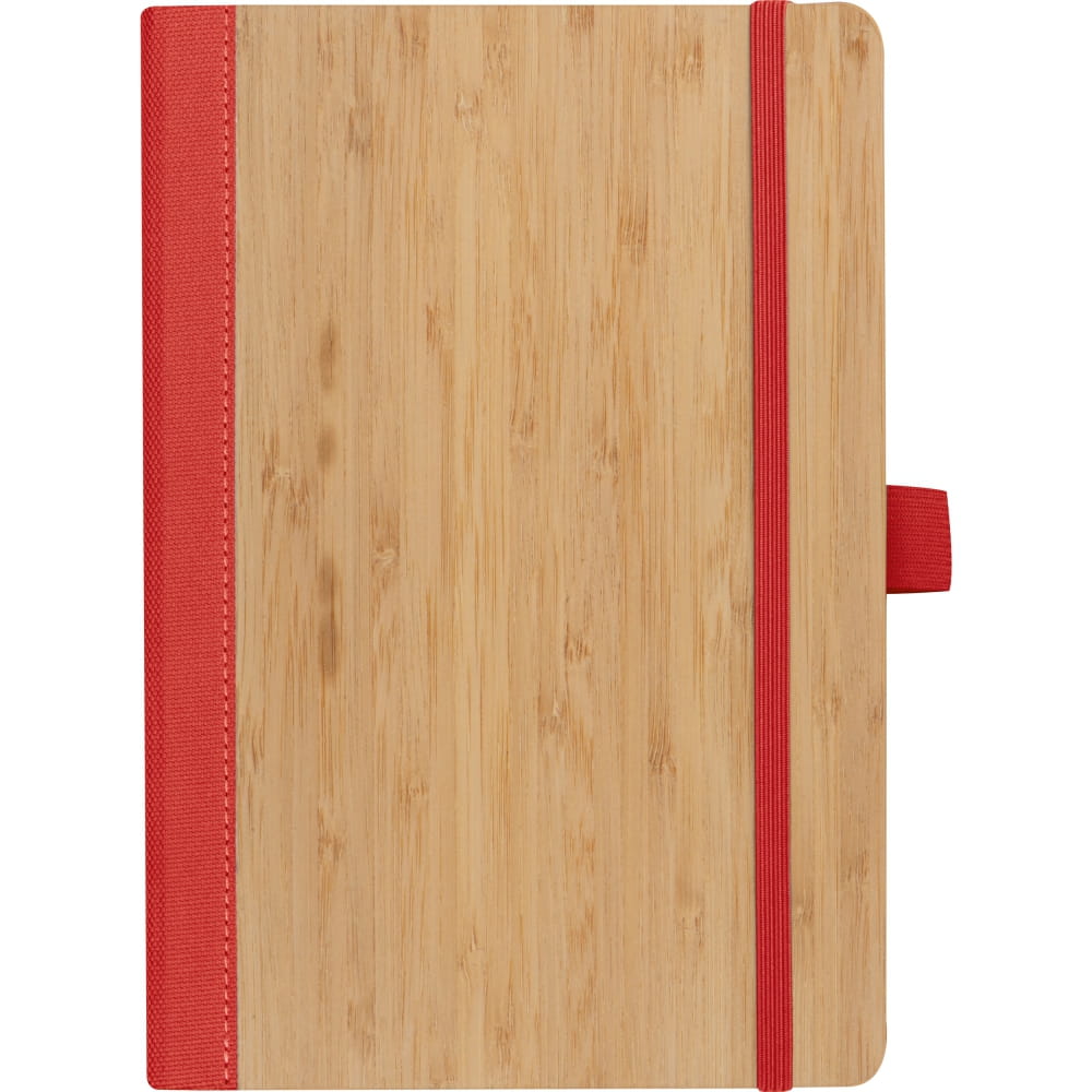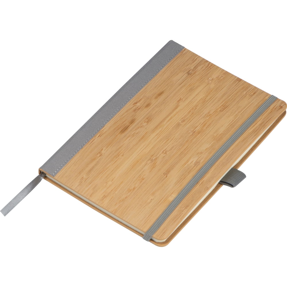 Notes o formacie A5, wykonany z bambusu i poliestru pochodzącego z recyklingu. Notes ma 192 stron w linię, zamknięcie na gumkę i pętelkę na długopis.