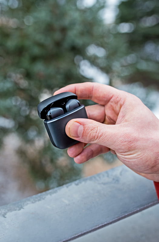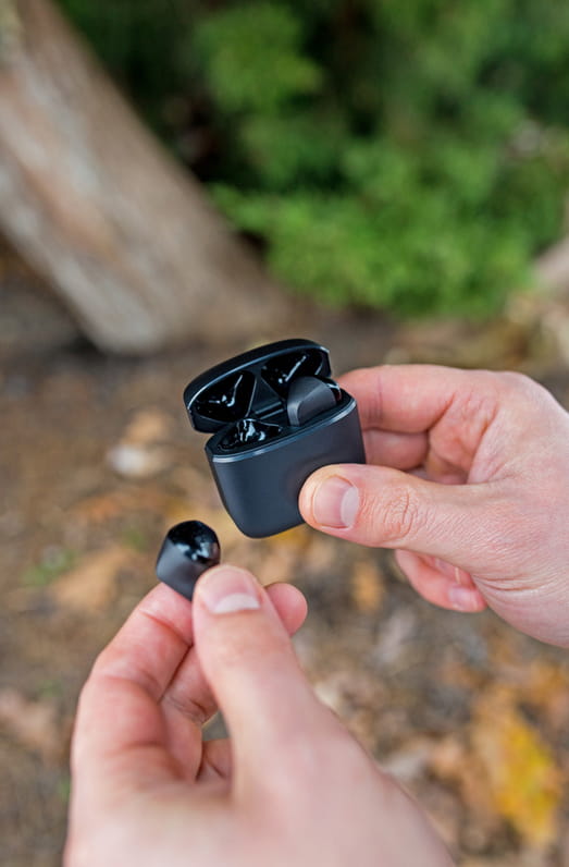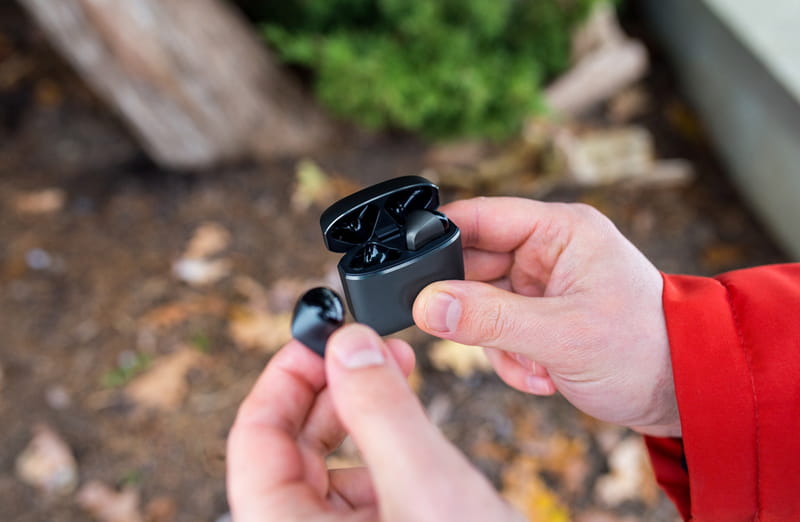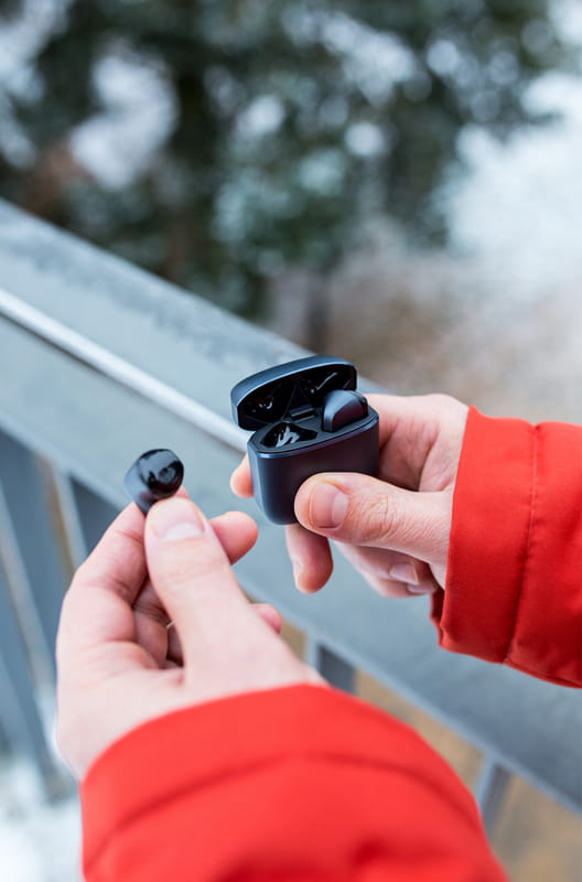 Słuchawki bezprzewodowe BT 5.2, douszne, bateria stacji ładującej 300 mAh, bateria słuchawek 25 mAh, funkcja odbierania połączeń, wbudowany mikrofon, czas pracy: ok. 3h, zasięg do 10 m, kabel USB typu C w komplecie