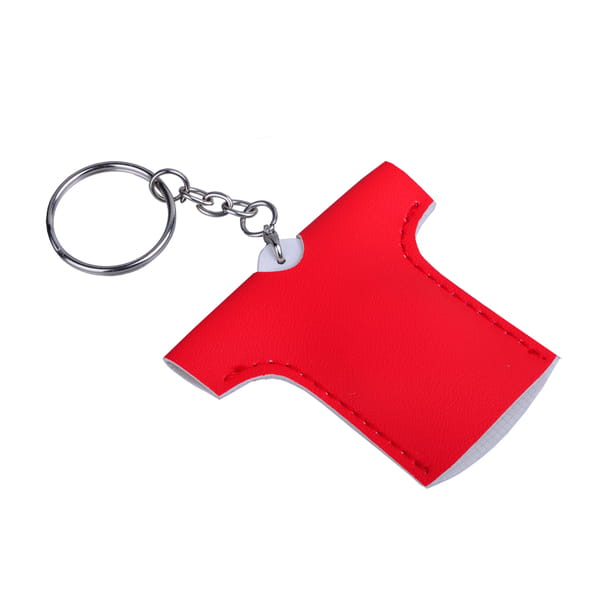 Brelok z ekoskóry w kształcie koszulki, który znakomicie nadaje się do promocji widowisk sportowych z udziałem polskich drużyn.
