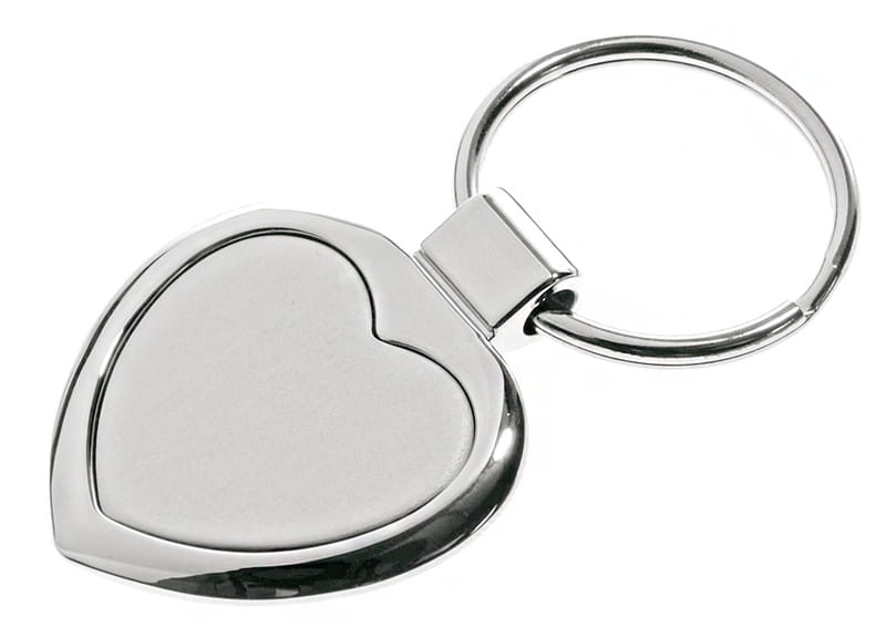Metalowy brelok w kształcie serduszka. Pakowany w czarne kartonowe opakowanie upominkowe.