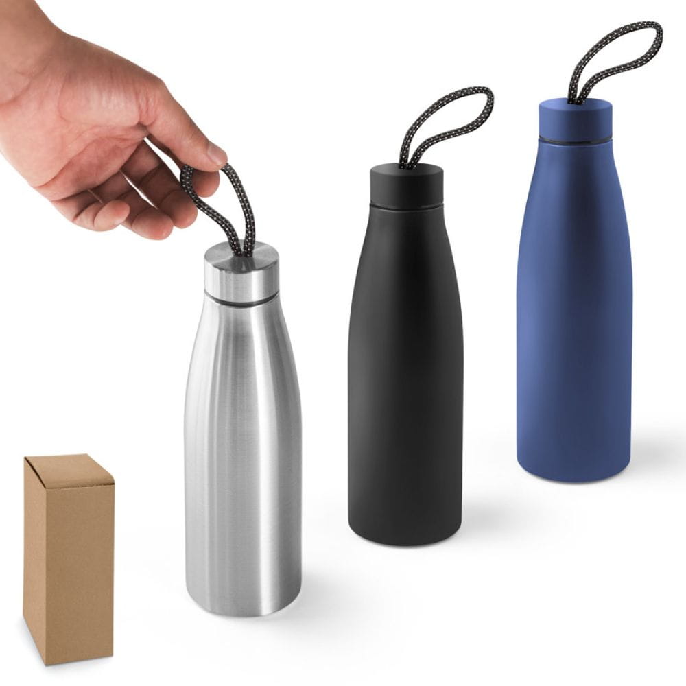 Butelka z pojedynczą ścianką wykonana ze stali nierdzewnej pochodzącej (90% z recyklingu). Zakrętka ma wzorzysty uchwyt. Pojemność do 710 ml. Dostarczana w pudełku prezentowym z papieru kraft.