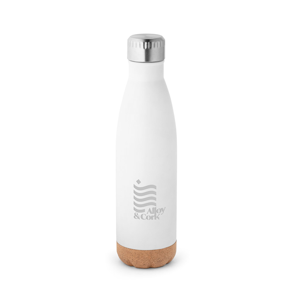 Dwuścienna, izolowana próżniowo butelka ze stali nierdzewnej z korkową podstawą. Utrzymuje temperaturę napojów przez 8 godzin, a zimno przez 24 godziny. Pojemność do 560 ml. Dostarczany w pudełku upominkowym z papieru kraft.