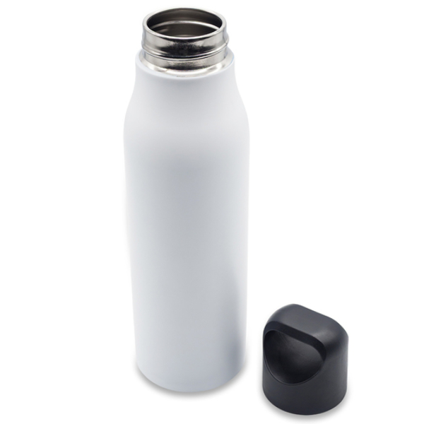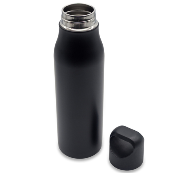 Butelka o pojemności 800 ml. Wyposażona w szczelną zakrętkę z uchwytem. Posiada pojedynczą ściankę wykonaną ze stali nierdzewnej 18/8 o podwyższonej jakości.