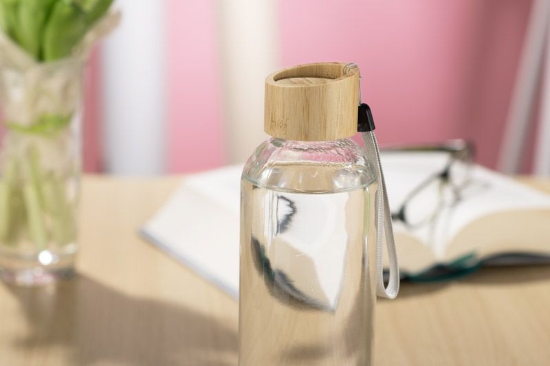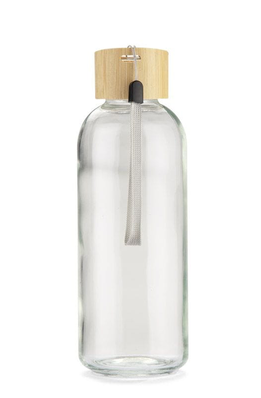 Butelka szklana o pojemności 650 ml wykonana jest ze szkła borokrzemowego, które charakteryzuje się wysoką odpornością na zmiany temperatury. Zakrętka z naturalnego bambusa ma oryginalny, ścięty kształt, co nadaje butelce nowoczesny wygląd. Dołączona smycz ułatwia przenoszenie i użytkowanie na co dzień.