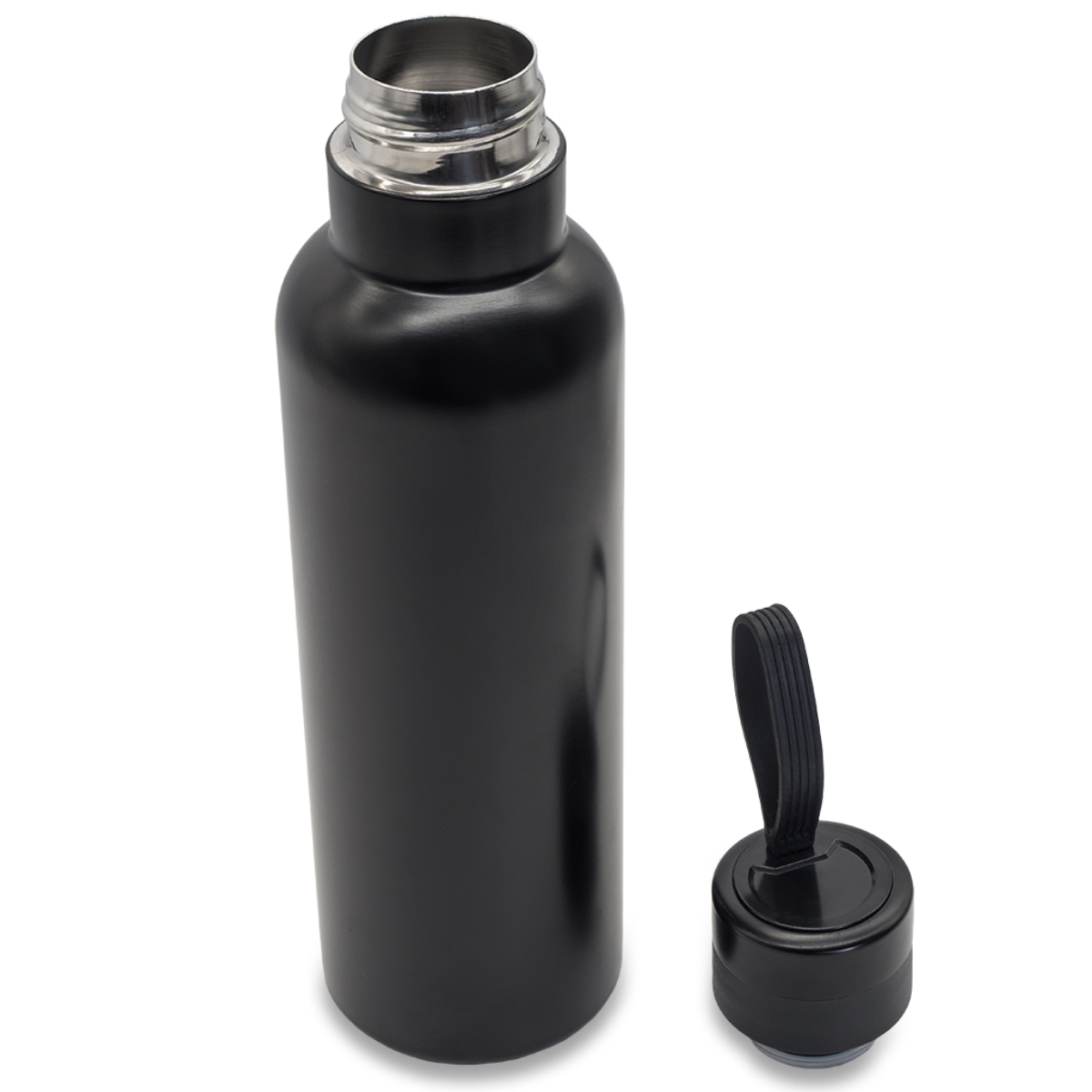 Szczelna butelka próżniowa o pojemności 500 ml z silikonowym uchwytem do noszenia. Wykonana ze stali nierdzewnej. Próżnia pomiędzy dwiema ściankami zapewnia bardzo dobre właściwości termoizolacyjne. Wewnętrzna ścianka wykonana ze stali o podwyższonej jakości 18/8. Butelka nadaje się zarówno do gorących jak i zimnych napojów. Utrzymuje temperaturę powyżej 40°C przez 15 godzin.
