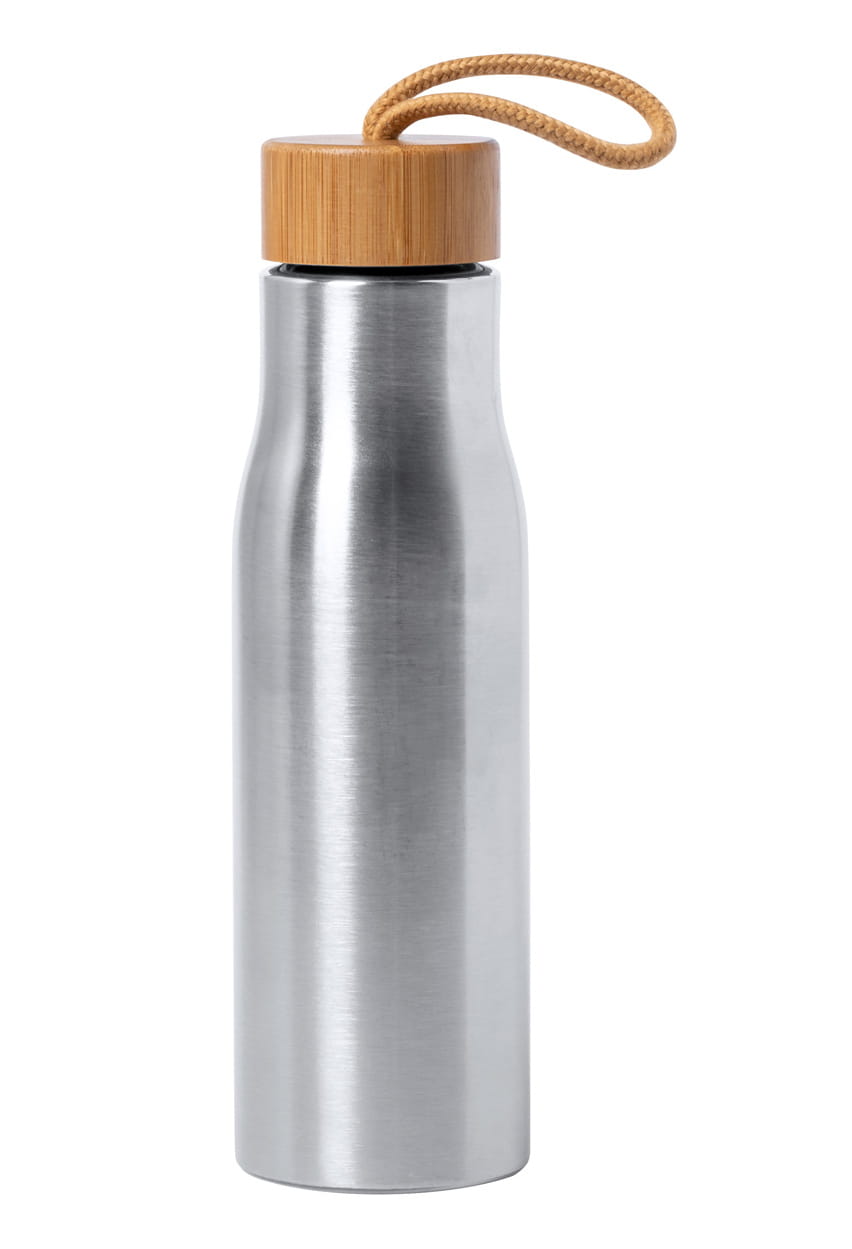 Butelka ze stali nierdzewnej z bambusową nakrętką i paskiem do noszenia, pojemność 550 ml.