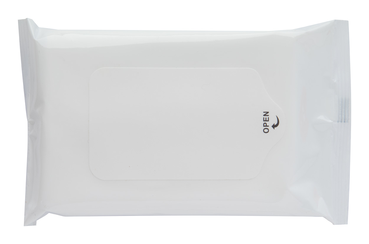 Chusteczki nawilżane – 10 szt. w opakowaniu z białym zamknięciem.