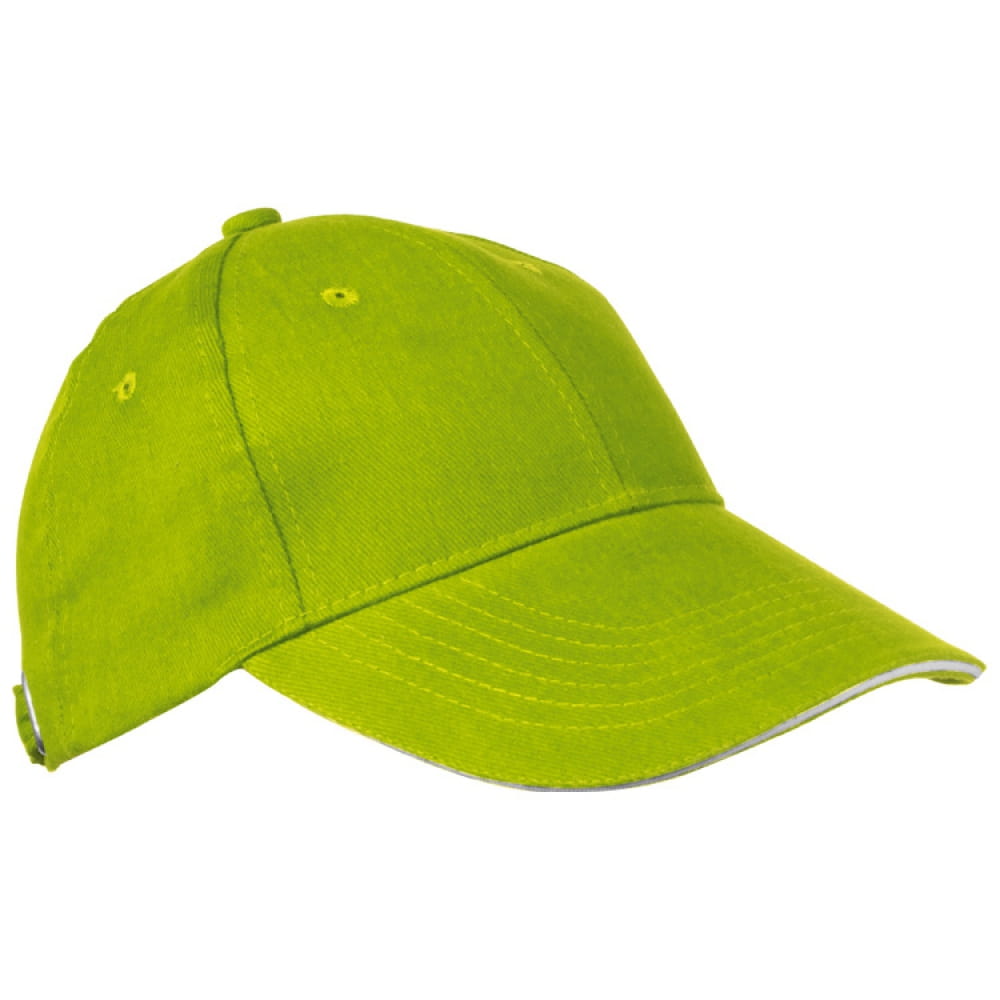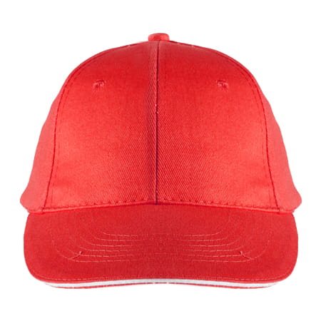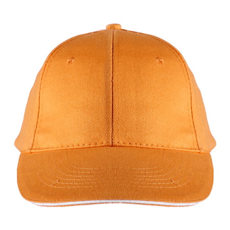 Czapka bawełniana z daszkiem z białym rantem i metalowym zapięciem z tyłu.Profilowany daszek doskonale chroni głowę przed słońcem czy deszczem. Otwory wentylacyjne umieszczone na 6 płatach w górnej części umożliwiają prawidłową wentylację dzięki czemu chroni przed przegrzaniem głowy. Na prawidłową wentylację ma również specjalny dobór materiałów z jakich została ona wykonana. Tylne mocne, metalowe zapięcie sprawia, że można ją dostosować do wielkości głowy dzięki czemu staje się bardziej uniwersalna.