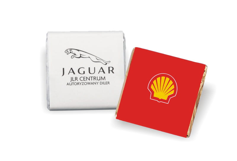 Czekoladki kwadratowe. Nadruk na etykiecie CMYK.