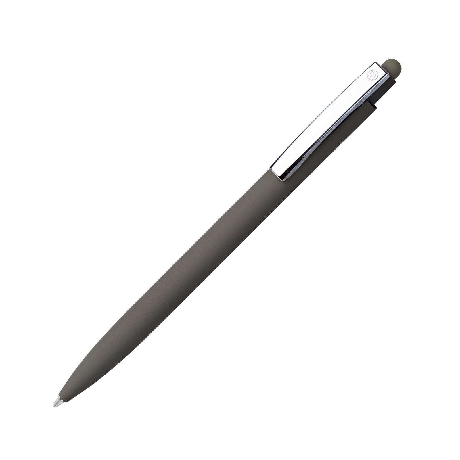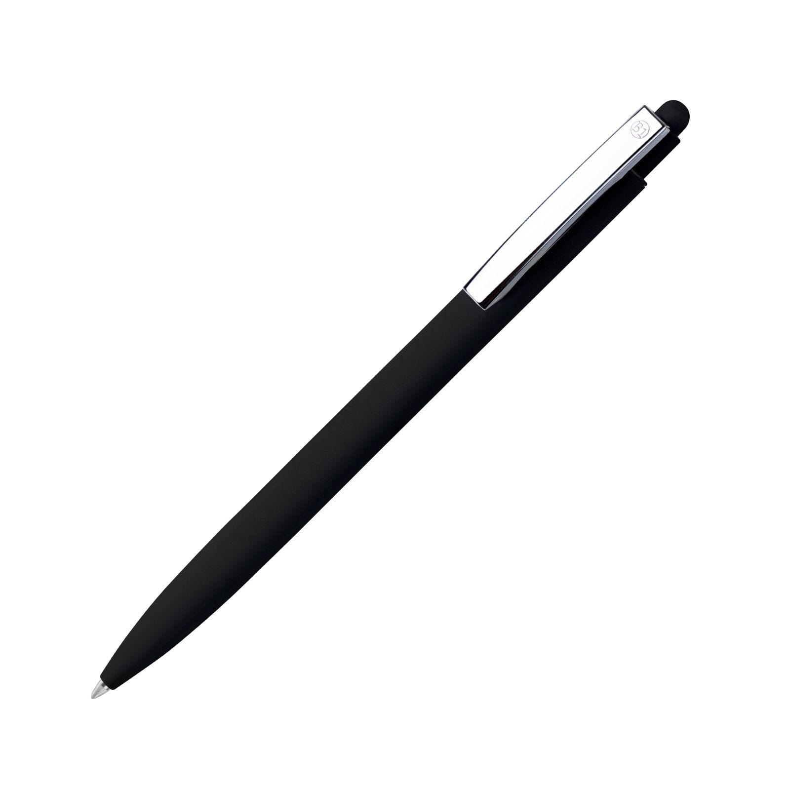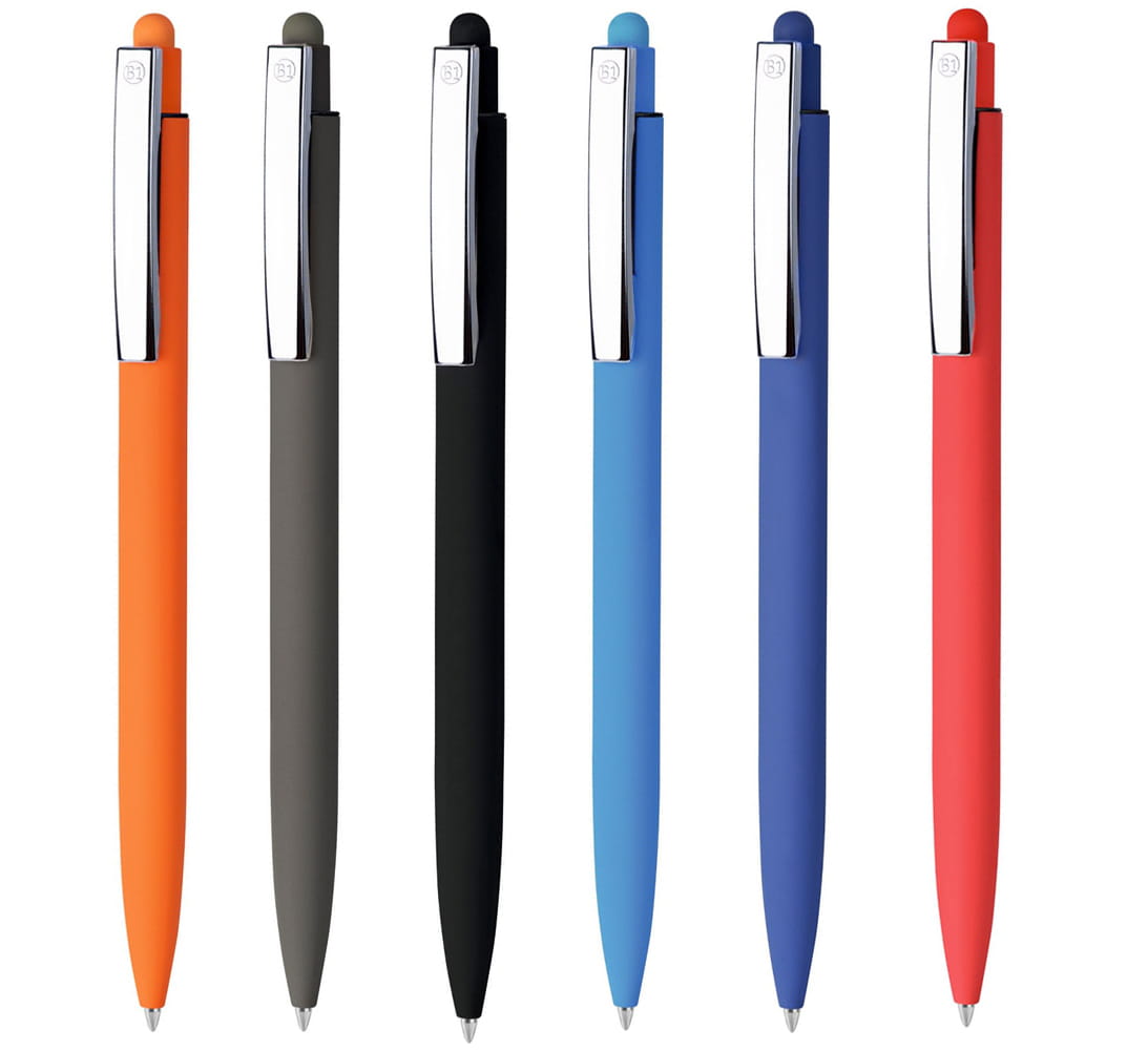Długopis metalowy z końcówką dotykową z powierzchnią soft i chromowanym klipsem..