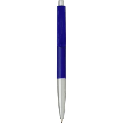 Długopis z kolorowym korpusem i srebrnym uchwytem.