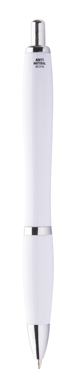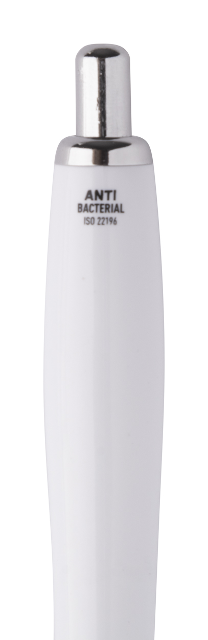 Plastikowy długopis z antybakteryjnym korpusem i chromowanymi elementami.