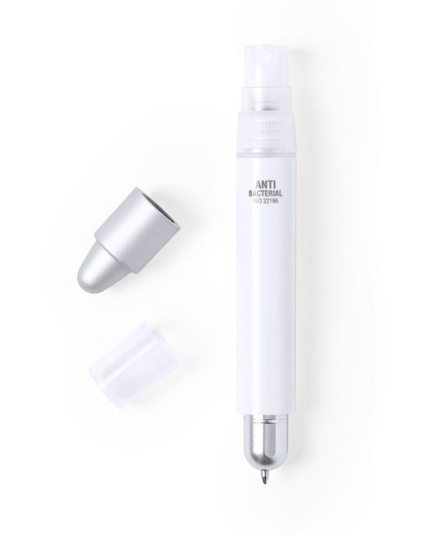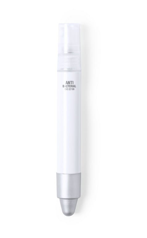 Antybakteryjny długopis z atomizerem do wielokrotnego napełniania (płyn nie jest dołączony), pojemność rozpylacza 3 ml, touch pen, spełnia wymagania normy ISO 22196