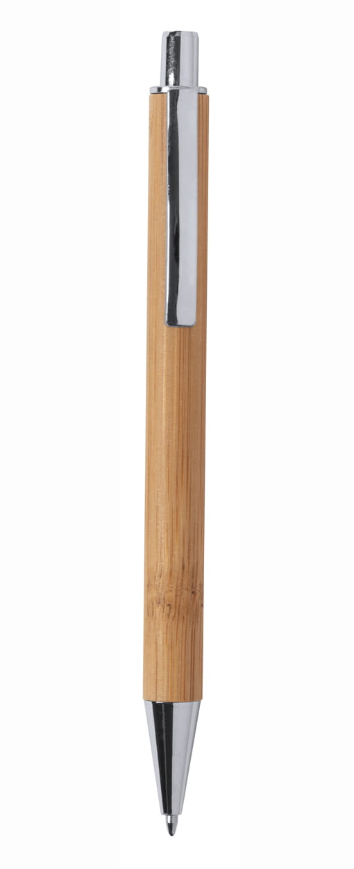 Bambusowy długopis z metalowym klipem i końcówką.
