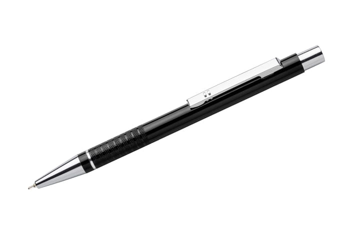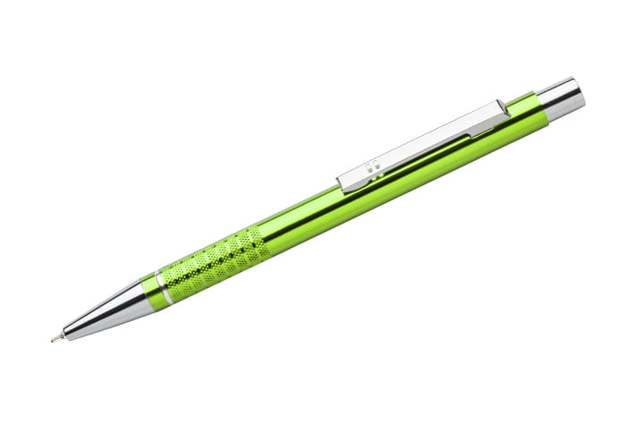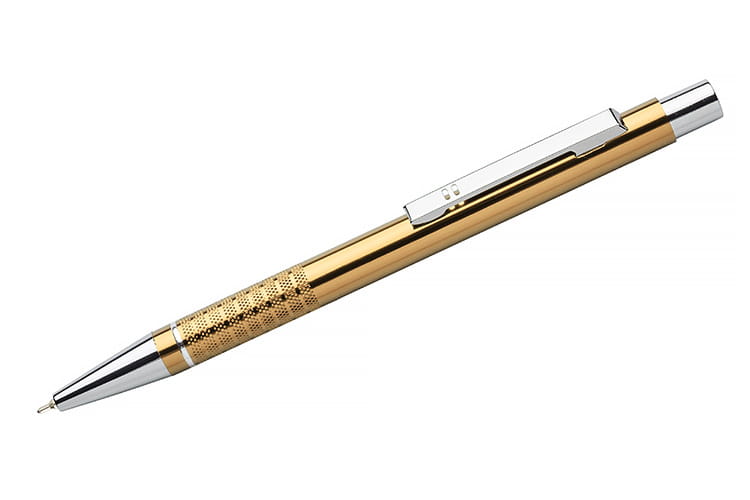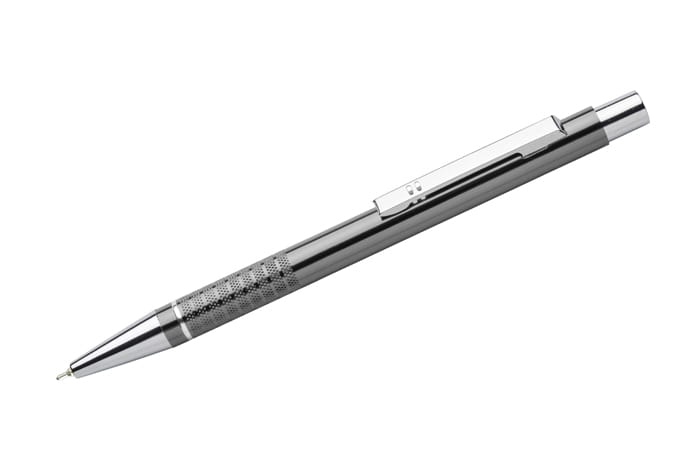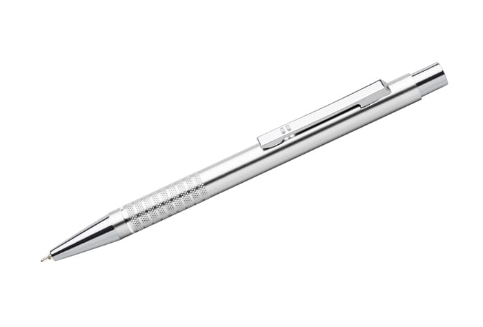 Długopis BONITO to klasyczny elegancki długopis metalowy o metalicznych kolorach z chromowanymi wykończeniami. Wykonany z aluminium. Korpus ozdobiony srebrnym ringiem na dole oraz paskami o delikatnie chropowatej strukturze. Nowy typ wkładu z tuszem półżelowym o grubości pisania 0,7 mm. Wkład w kolorze niebieskim.