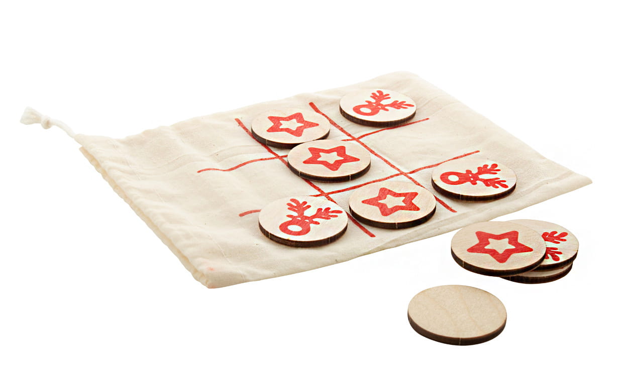 Świąteczna gra w kółko i krzyżyk ze sklejki brzozowej z 10 żetonami w bawełnianym etui.