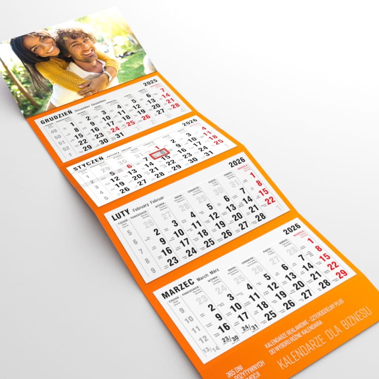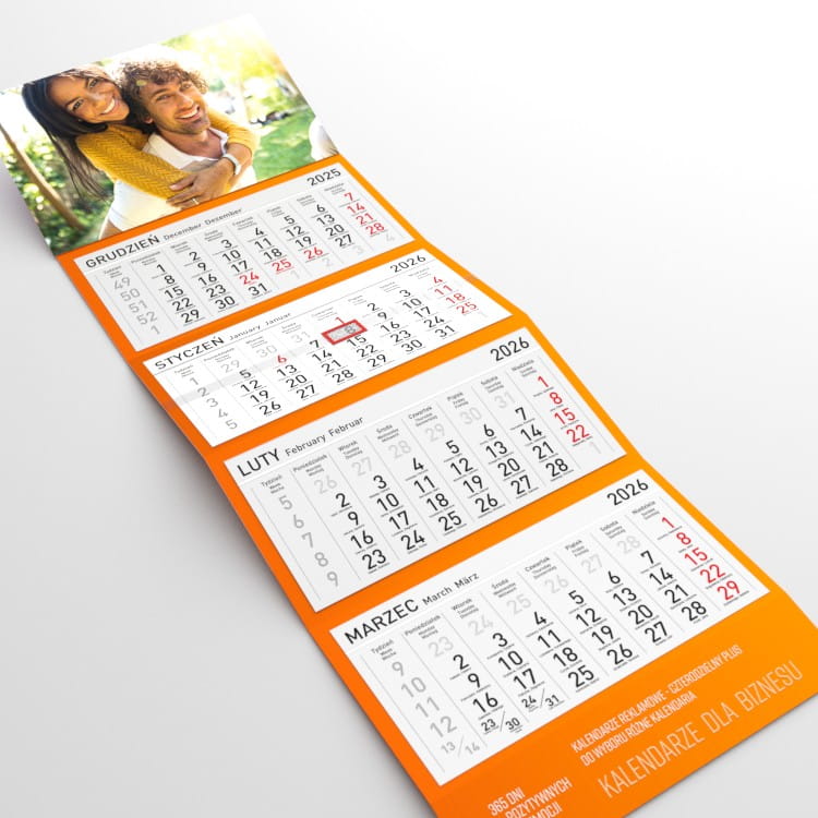 Kalendarz czterodzielny PLUS z indywidualną grafiką reklamową.