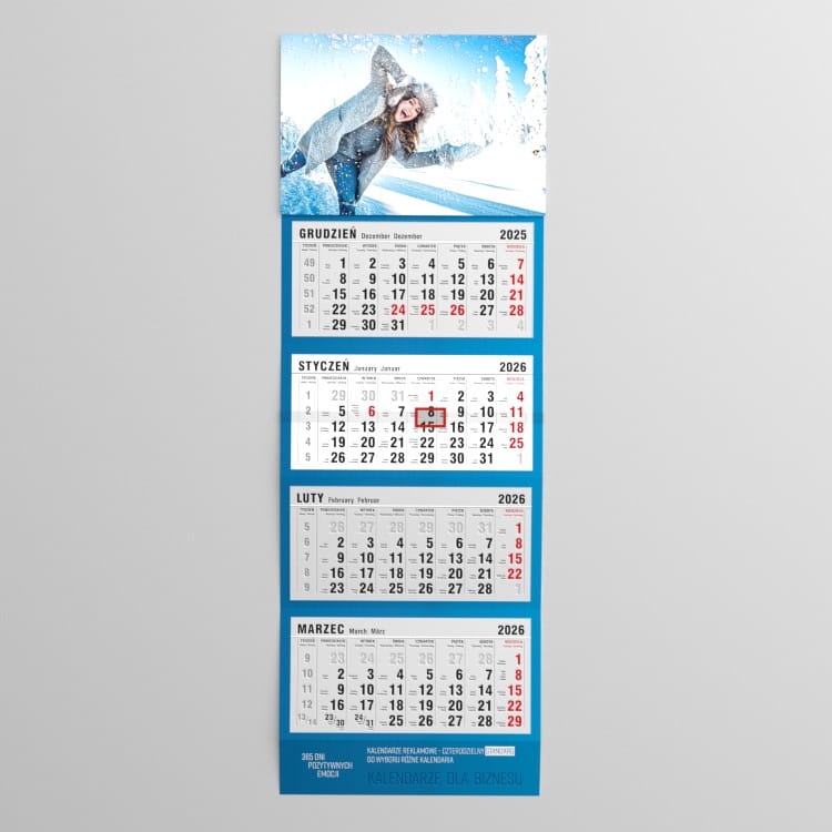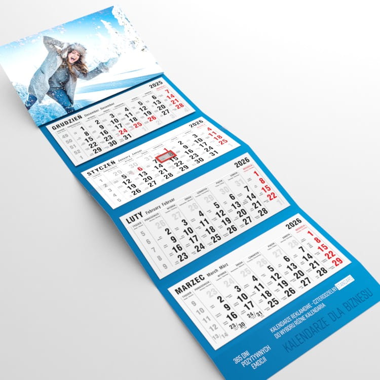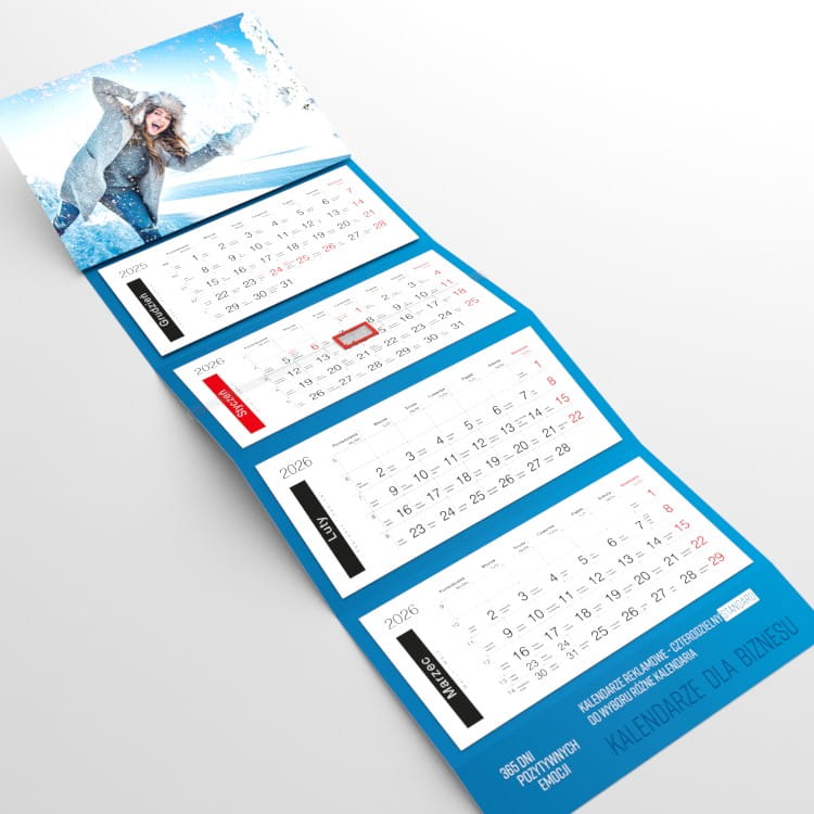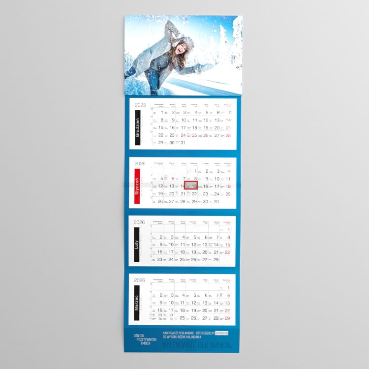 Kalendarz czterodzielny STANDARD z indywidualną grafiką reklamową.