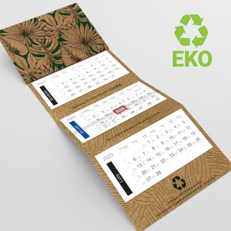 Klasyczny kalendarz trójdzielny z indywidualną grafiką reklamową zarówno na główce jak i plecach. Wydrukowany na papierach ekologicznych, recyklingowych.