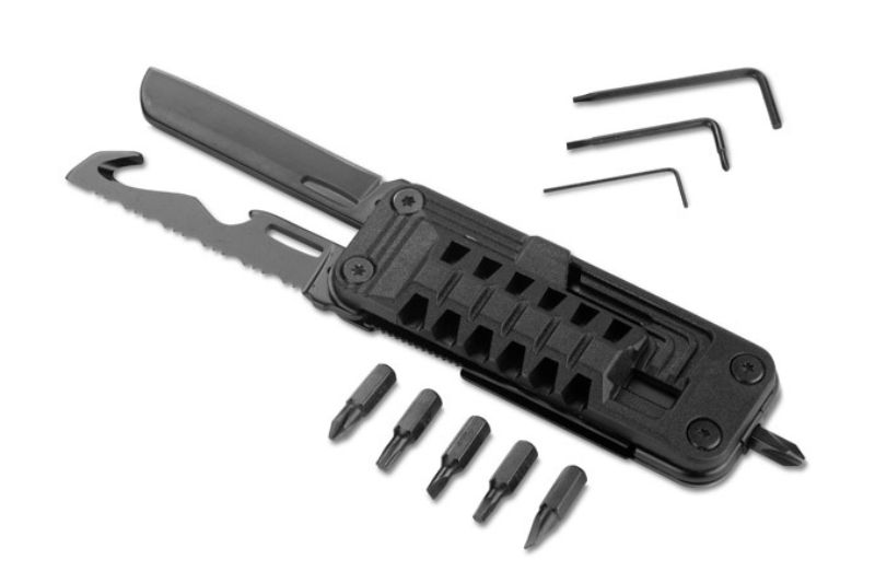 Kompaktowy zestaw narzędzi multitool, który sprawdzi się w codziennych sytuacjach i drobnych naprawach. W jednej obudowie mieści praktyczne wyposażenie: śrubokręty, otwieracz do butelek, piłę oraz nóż. Dzięki niewielkim wymiarom i składanej konstrukcji narzędzie jest łatwe do przenoszenia i zawsze pod ręką. Idealny jako drobny upominek dla klientów lub element praktycznego zestawu promocyjnego.