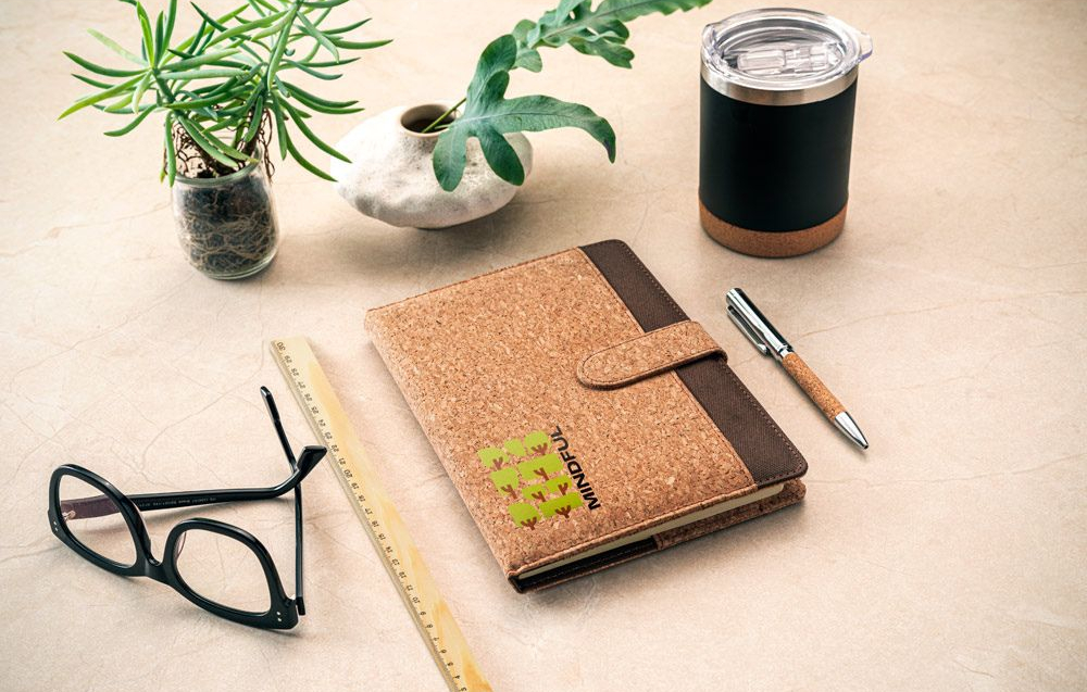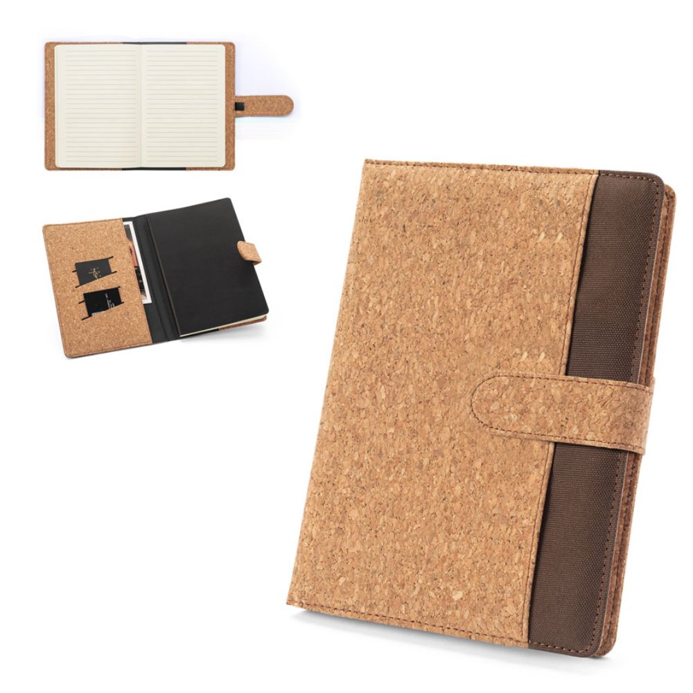 Teczka A5 z korka i poliestru pochodzącego z recyclingu (100% rPET) z wyjmowanym notatnikiem