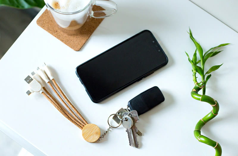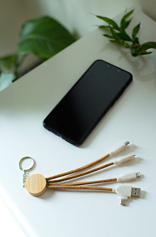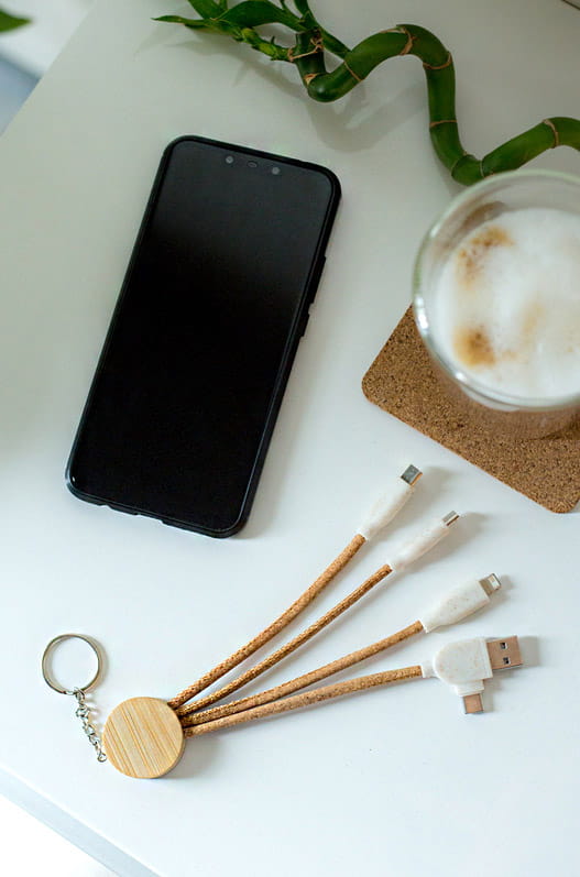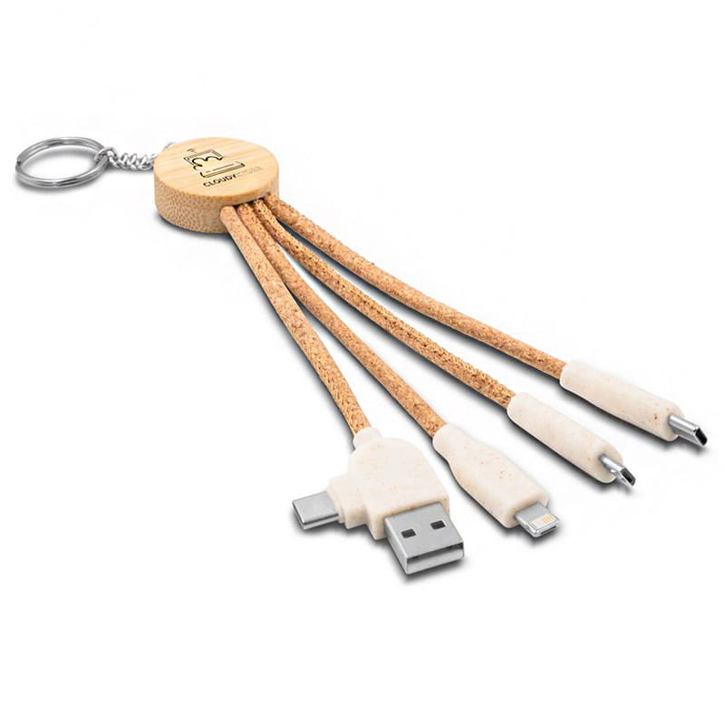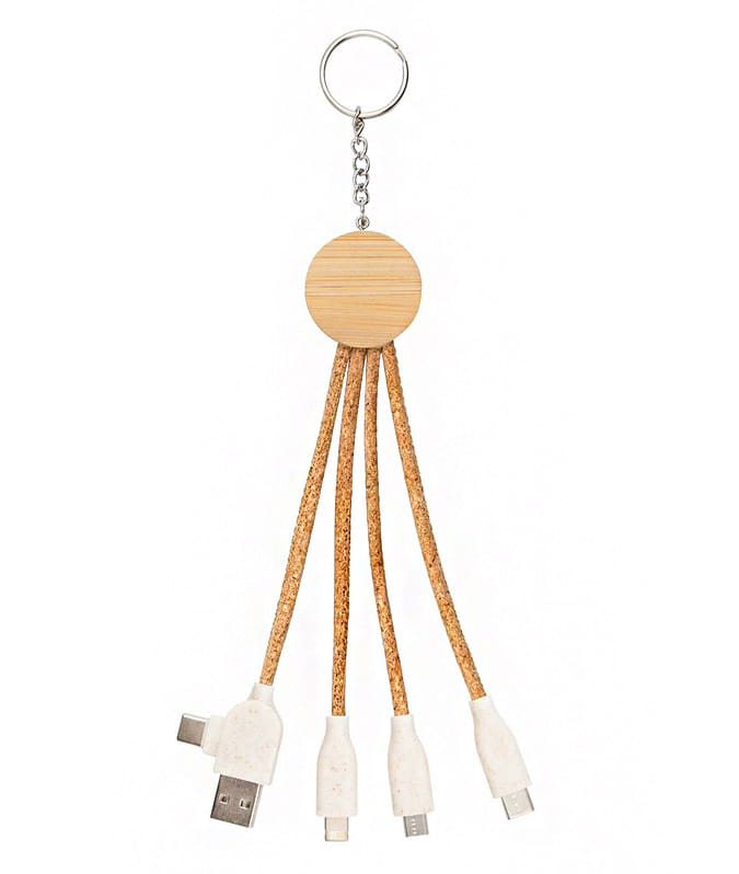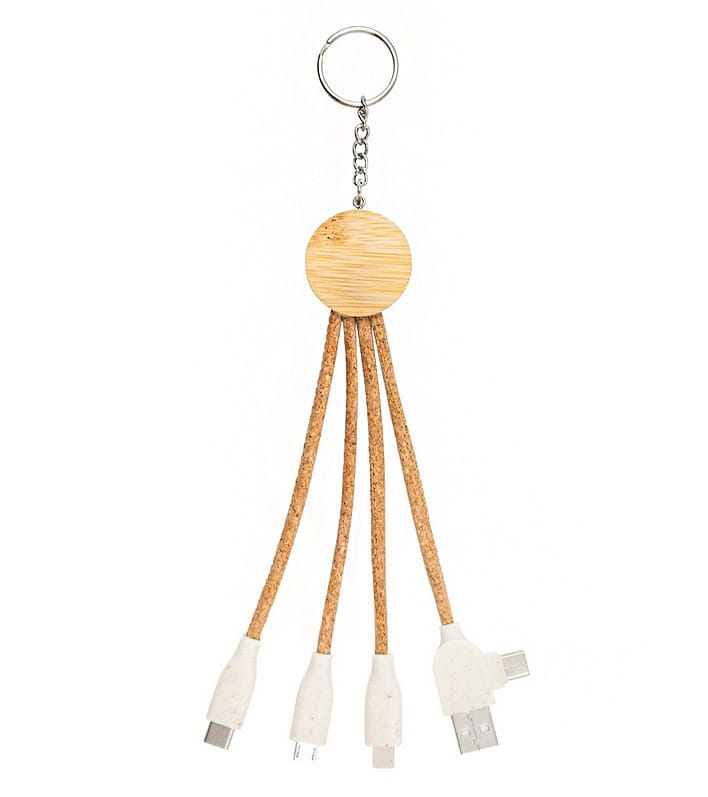 Brelok do kluczy, korkowy kabel do ładowania B'RIGHT, elementy z bambusa i włókien słomy pszenicznej, 17 cm,