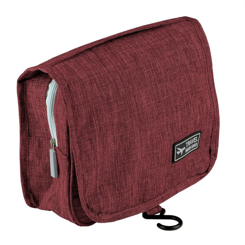 Kosmetyczka z wieloma przegrodami, przegroda główna na zamek błyskawiczny, 1 kieszeń siateczkowa, przezroczysta kieszeń oraz kieszeń przednia na zamek błyskawiczny, haczyk do powieszenia w komplecie