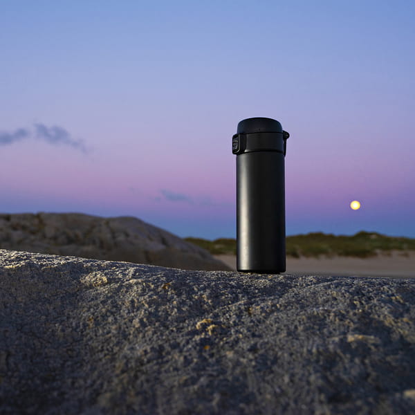Wyjątkowy, próżniowy kubek o pojemności 500 ml. Utrzymuje temperaturę powyżej 40°C przez 16 godzin. Nowoczesna technologia unbolt&press stanowi podwójne zabezpieczenie przed przypadkowym wylaniem napoju. Szczelne zamknięcie typu leak proof. Dwie ścianki ze stali nierdzewnej, zarówno wewnątrz jak i na zewnątrz zastosowano stal nierdzewną 18/8 o podwyższonej jakości. Podstawa kubka z silikonu. Produkt klasy premium.
