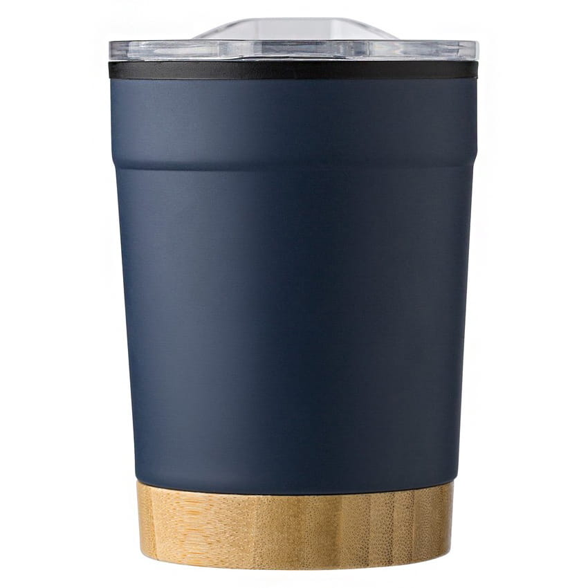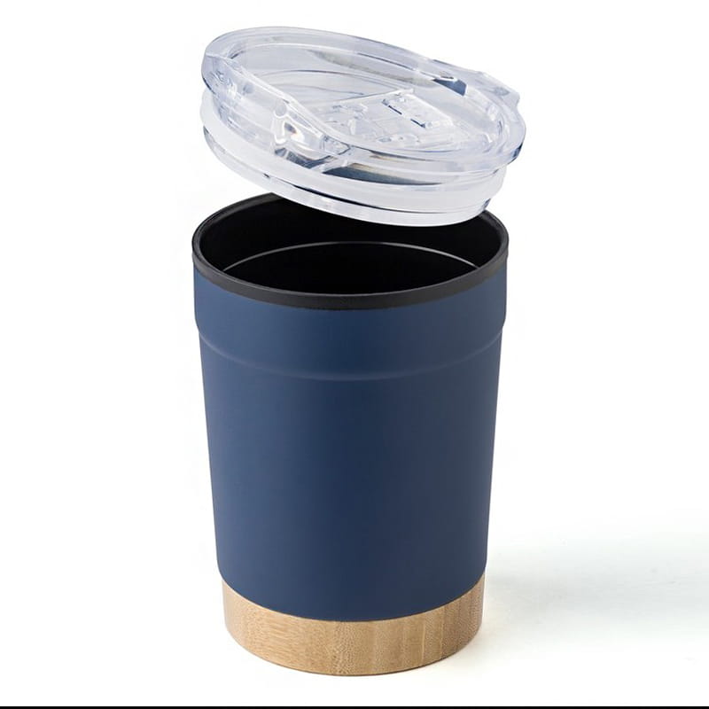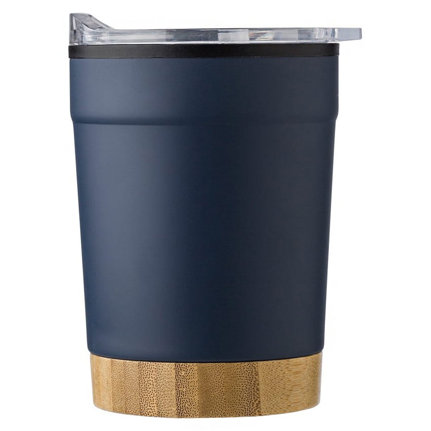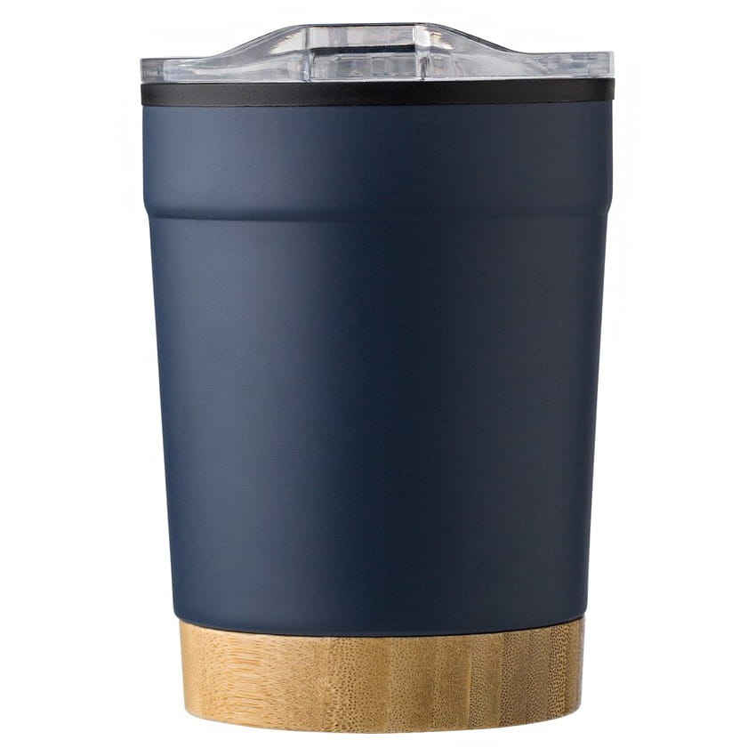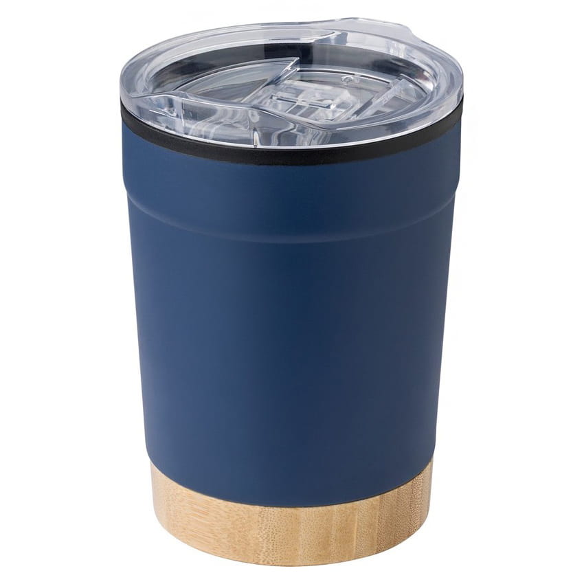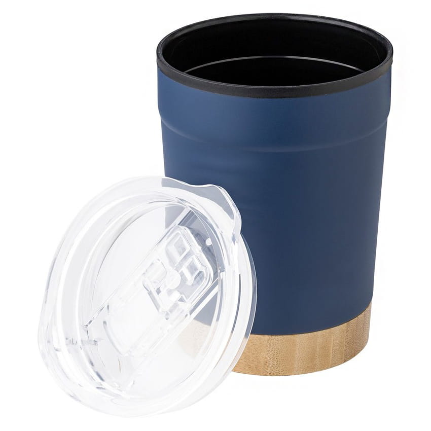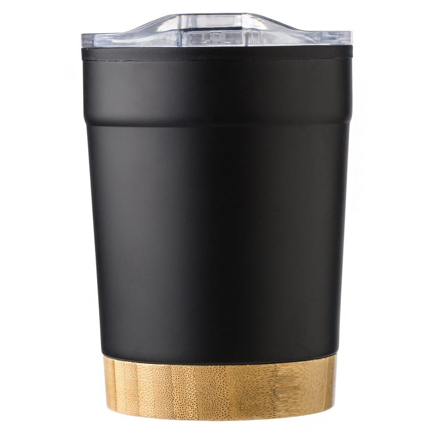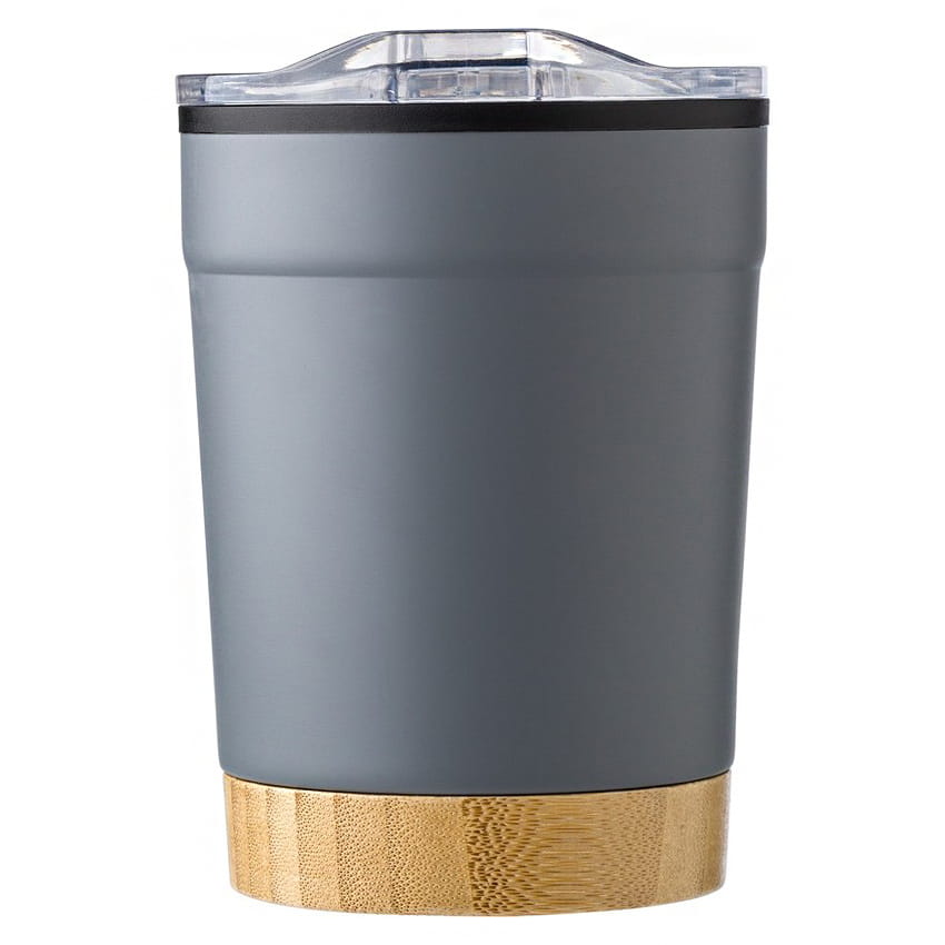 Kubek termiczny o pojemności 300 ml, wykonany ze stali nierdzewnej, wnętrze z PP, bambusowy element, plastikowe wieczko.