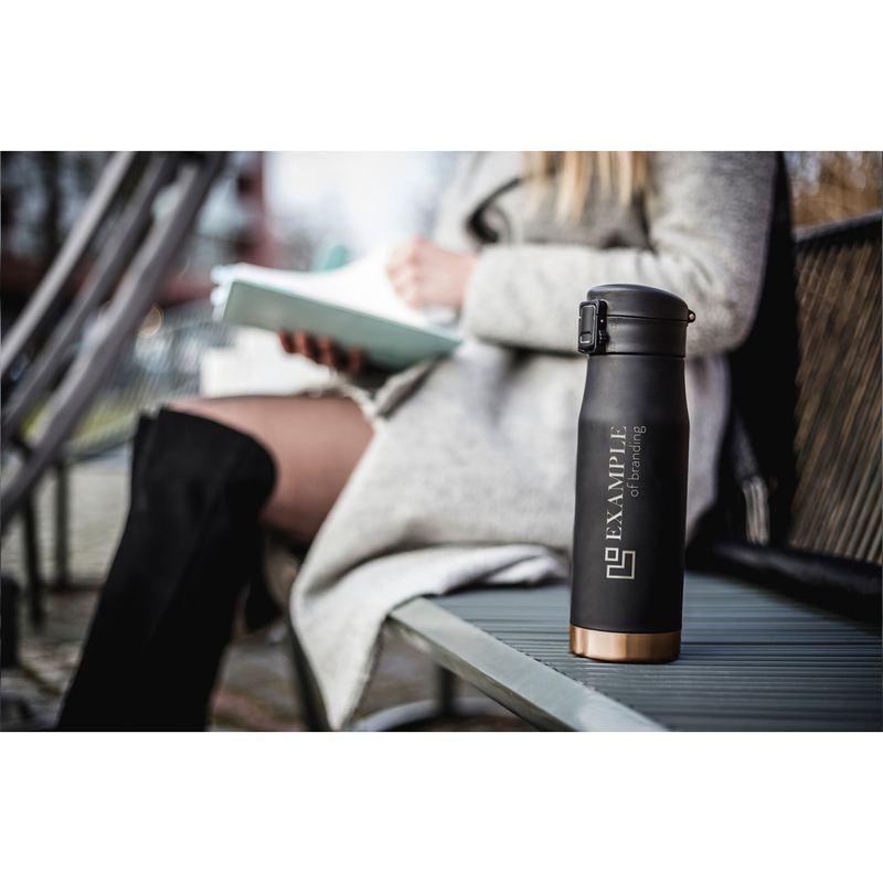 Kubek termiczny Mauro Conti 550 ml, wieczko z blokadą, miedziana izolacja próżniowa, podwójne ścianki ze stali nierdzewnej z próżnią między ściankami dzięki czemu zachowuje funkcje termosu i długo utrzymuje temperaturę nie oddając jej na zewnątrz, funkcja push open /close, nie wymaga obsługi oburącz, zapakowany w ozdobnym pudełku, klasa termiczna: 3 + leakproof.