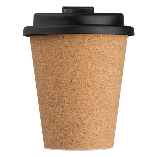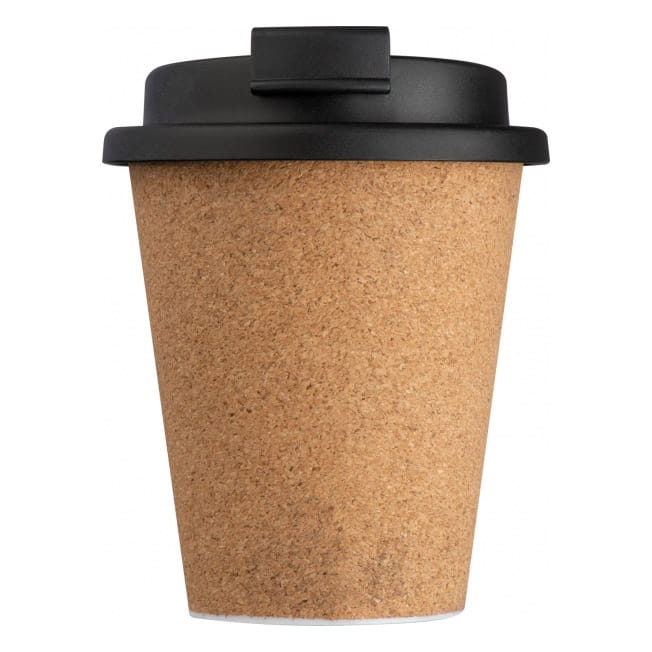 Szczelny kubek do picia o pojemności 350 ml z powłoką korkową i zamykanym ustnikiem.