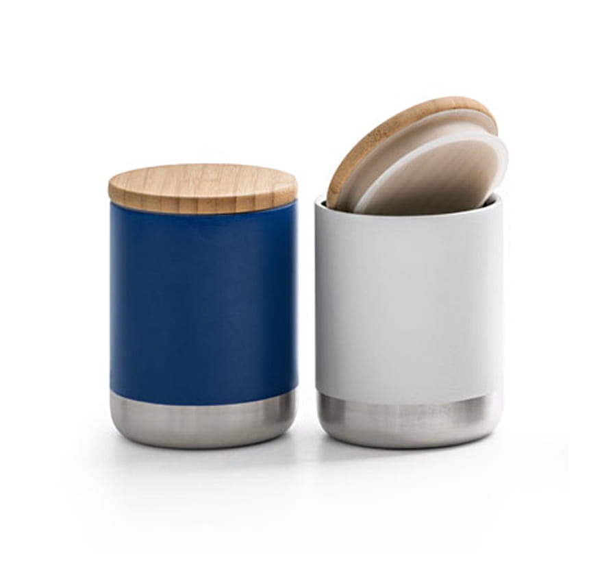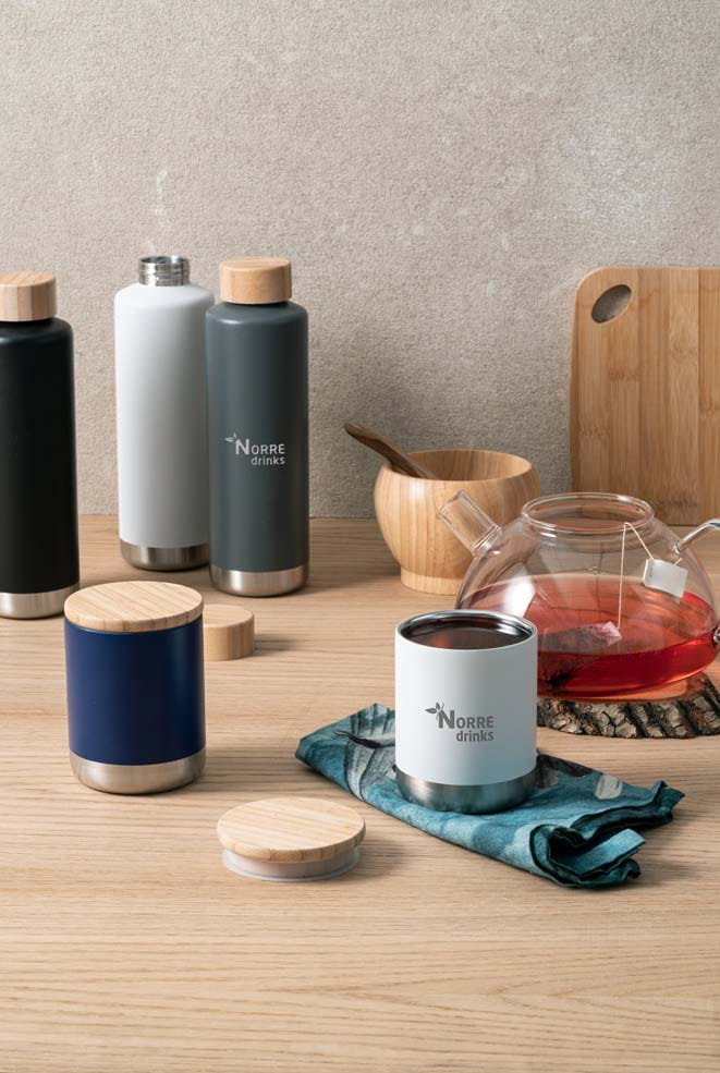 Kubek wykonany ze stali nierdzewnej o podwójnych ściankach z bambusową pokrywką i silikonową uszczelką dla dodatkowej ochrony. Kubek ma pojemność do 370 ml i utrzymuje temperaturę gorących napojów przez 5,5 godziny, a zimnych przez 24 godziny. Posiada również powłokę proszkową, która zapewnia jej większą trwałość i wytrzymałość. Dostarczana w pudełku kartonowym.