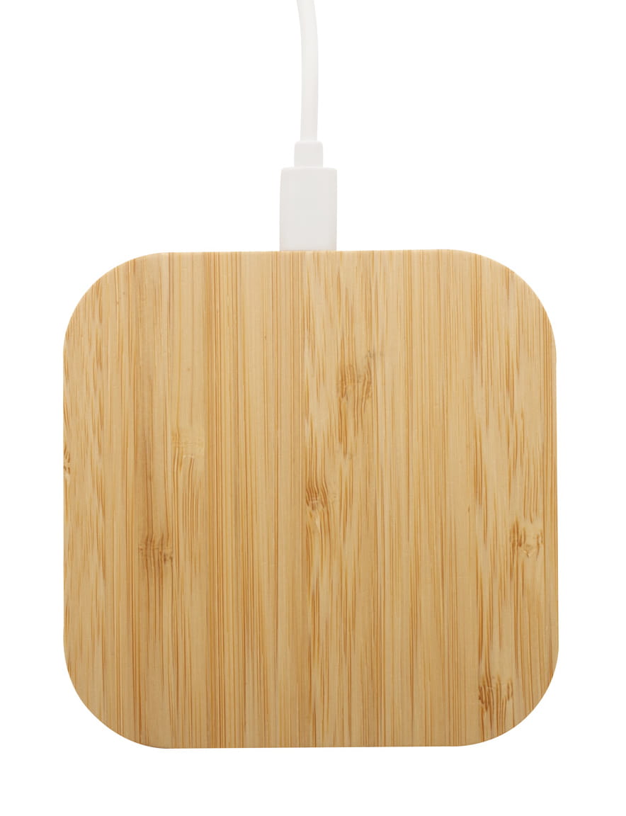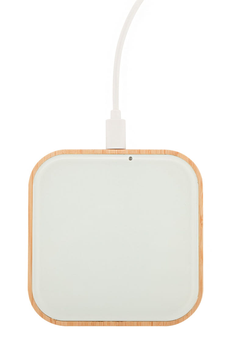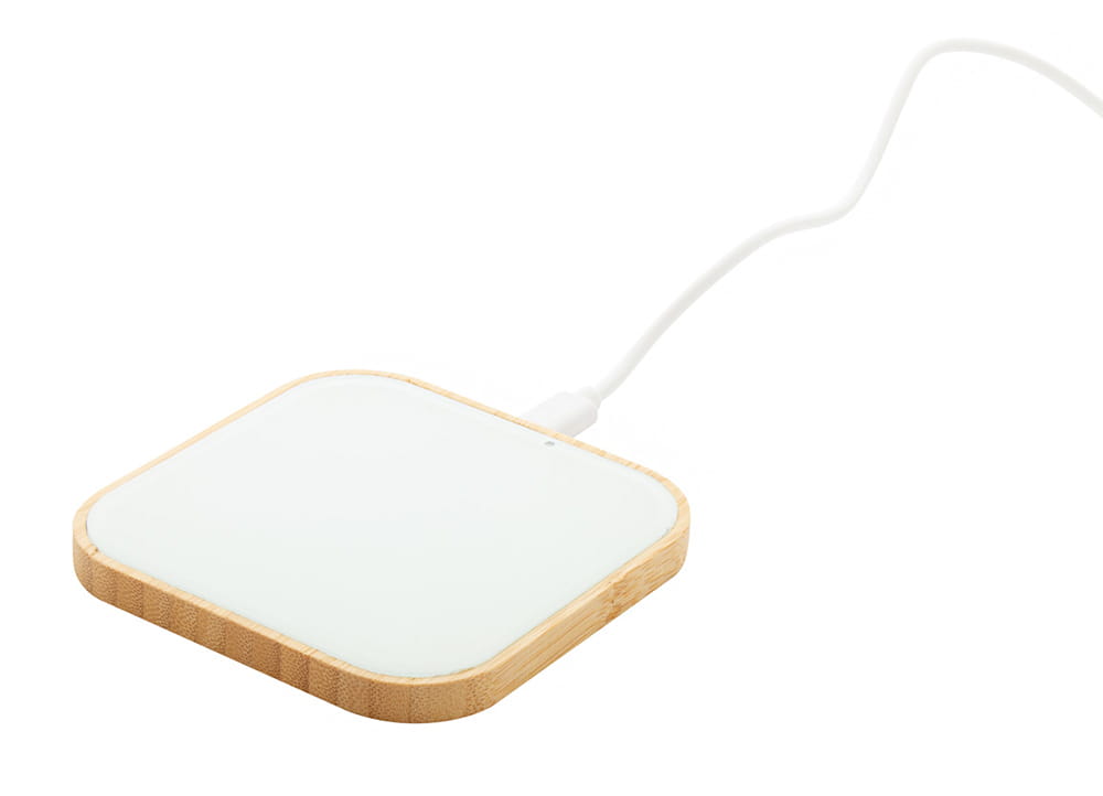 Bezprzewodowa ładowarka indukcyjna (10W) w bambusowej obudowie ze szkłem hartowanym. Zawiera kabel USB.