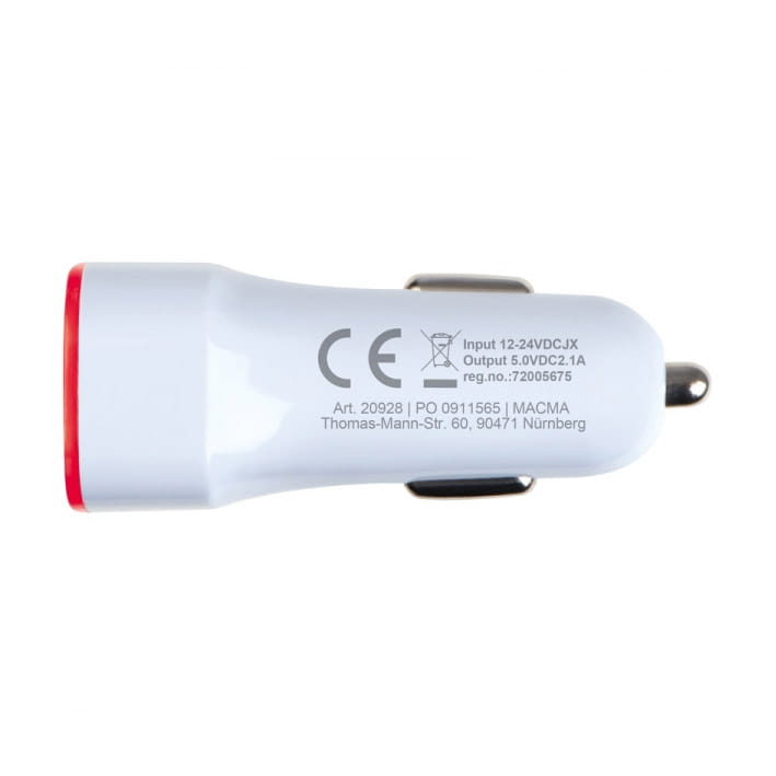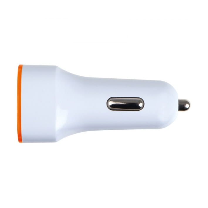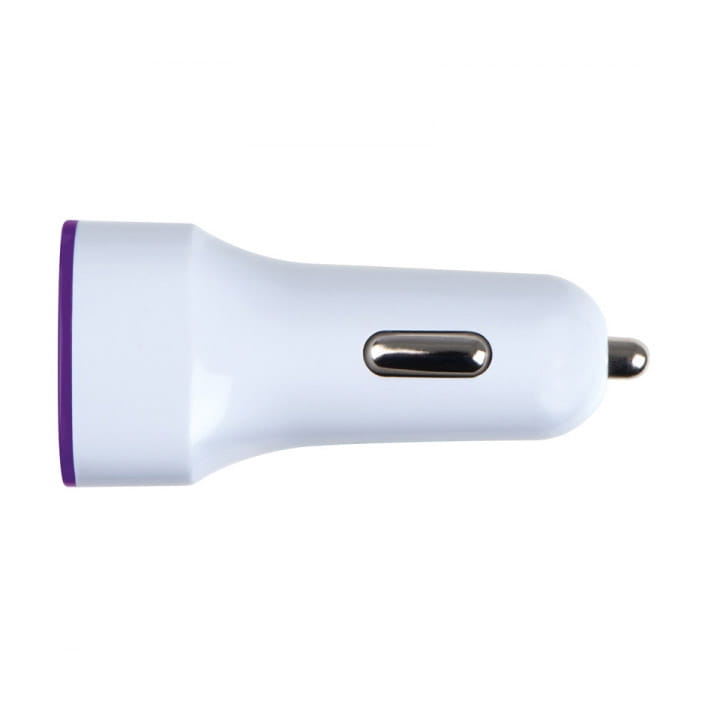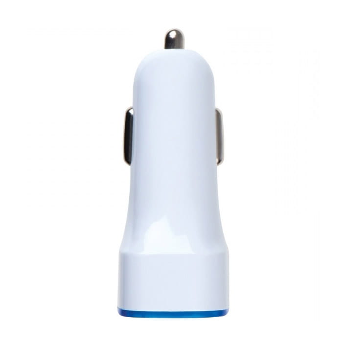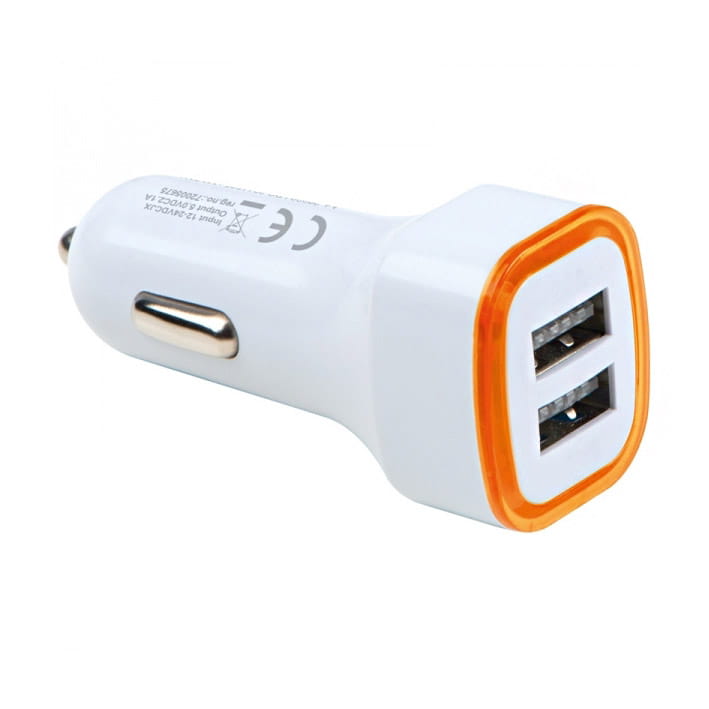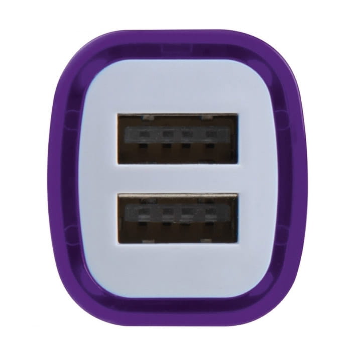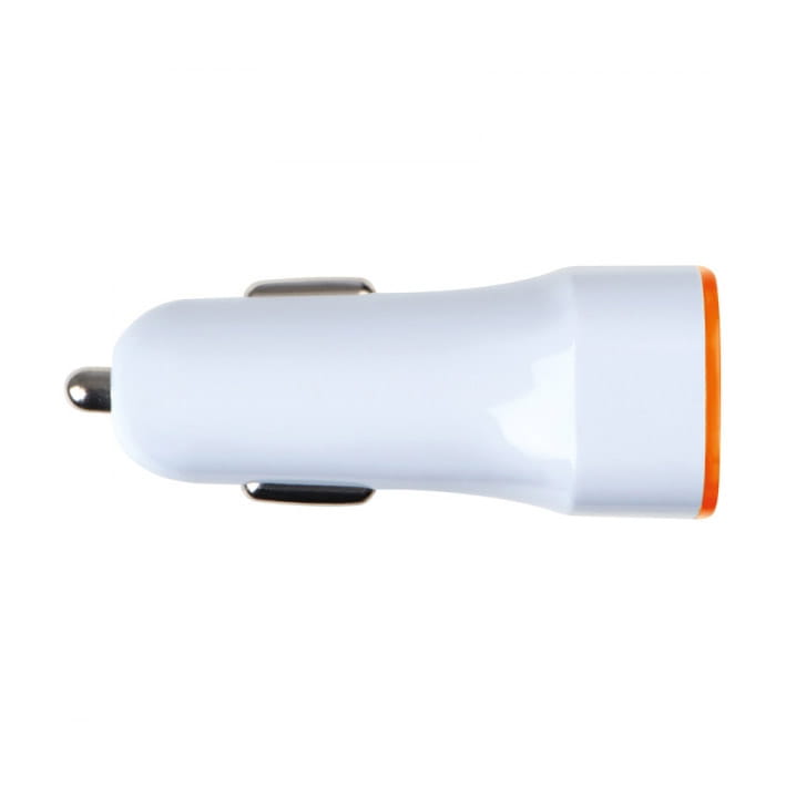 Ładowarka samochodowa USB z dwoma wejściami USB, podłączana do zapalniczki samochodowej. Wykonana z metalu i plastiku. Dostępna w kilku soczystych kolorach.