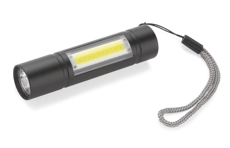 BATRI to wygodna i solidnie wykonana latarka z trzema trybami światła: ciągłe, migające i boczne COB. Wykonana z metalu. Wyposażona w smyczkę i wbudowany akumulator ładowany poprzez kabel micro USB, który znajduje się w zestawie.