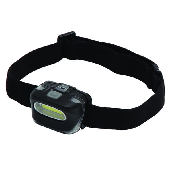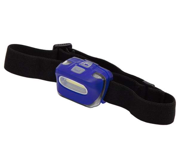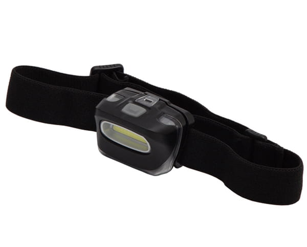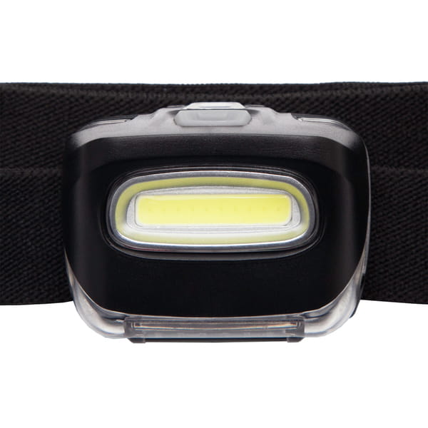 Latarka czołowa o strumieniu światła 100 lumenów. Dioda 3 W z wykorzystaniem technologii COB. Regulowany pasek na głowę/czapkę/kask. Regulowany kąt nachylenia latarki w zakresie 18-20 stopni. Zasilana 3 bateriami typu AAA (dołączone). Żywotność LED 100 000 godz. Zasięg 80 metrów.