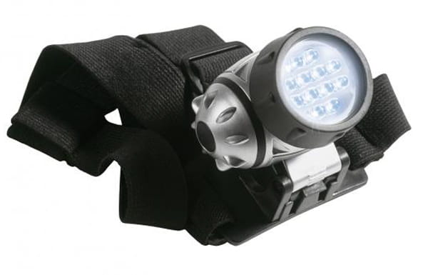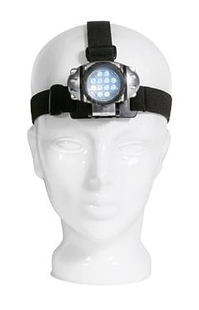 Lampa czołowa KILIMANDSCHARO z 12 diodami LED, żywotność żarówki około 100 000 godzin, regulowane oświetlenie, obracana na 4,8 lub 12 żarówek wraz z opcją migania, regulowana, wygodna opaska, z tworzywa sztucznego.