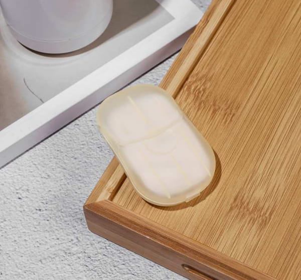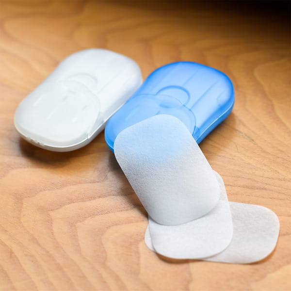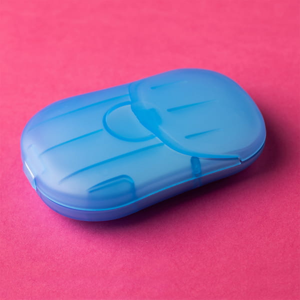 Mydlane listki w estetycznym, zamykanym etui. Higieniczny mini zestaw idealny by zawsze mieć go przy sobie w torebce, samochodzie czy podróży. Aby umyć ręce wystarczy umieścić rozpuszczalny, mydlany listek na dłoni i zmoczyć go wodą.