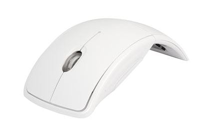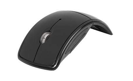 Składana mysz, z miniaturowym, bezprzewodowym odbiornikiem 2,4 GHz chowanym w obudowie.