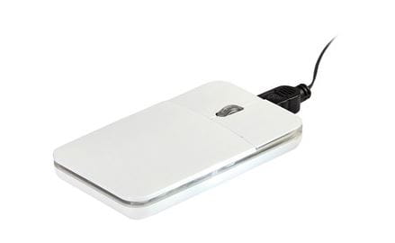 Płaska mysz, na której można wykonać nadruk w pełnym kolorze oraz podświetlane logo. Idealna do notebooka.