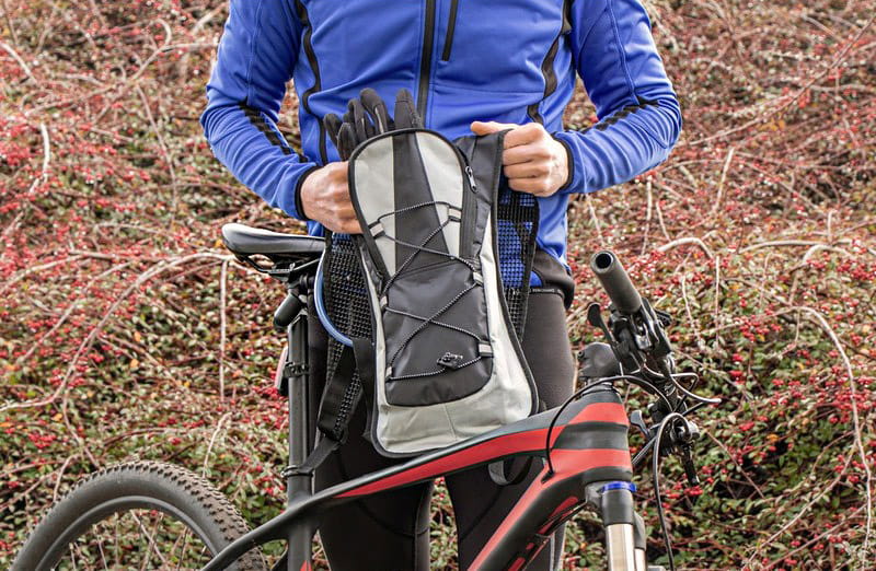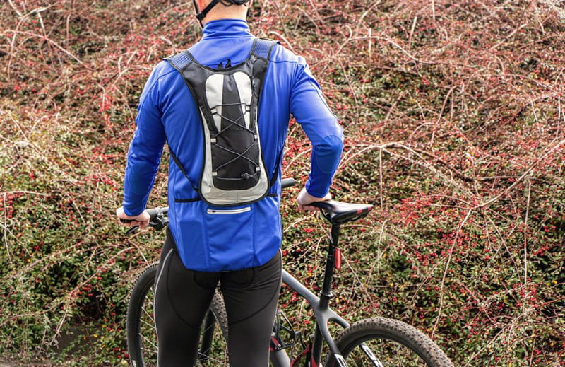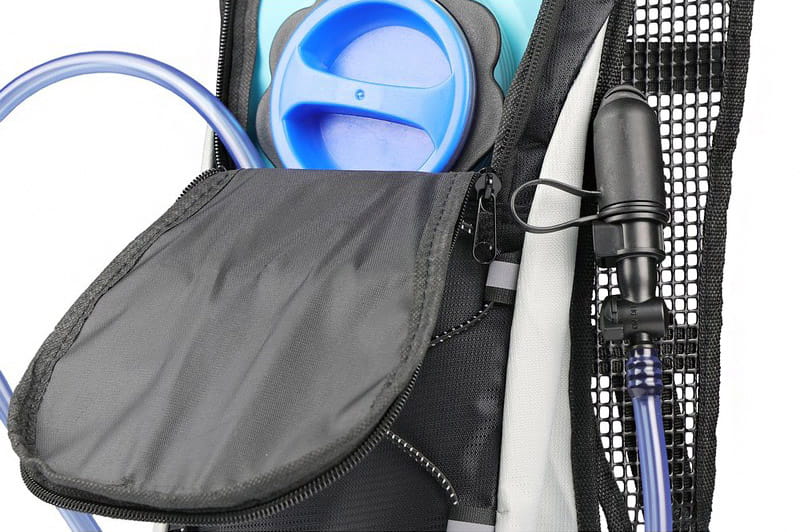 Wodoodporny plecak rowerowy sportowy poj. 5L, przegroda główna na zamek błyskawiczny, 1 kieszeń wewnętrzna, możliwość umieszczenia 2L bukłaka na wodę wewnątrz (nie jest dołączony), regulowane paski na ramię.