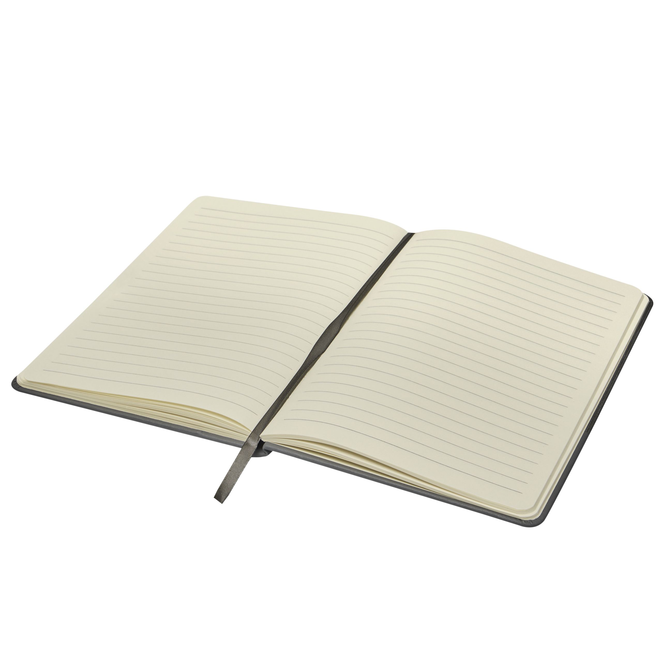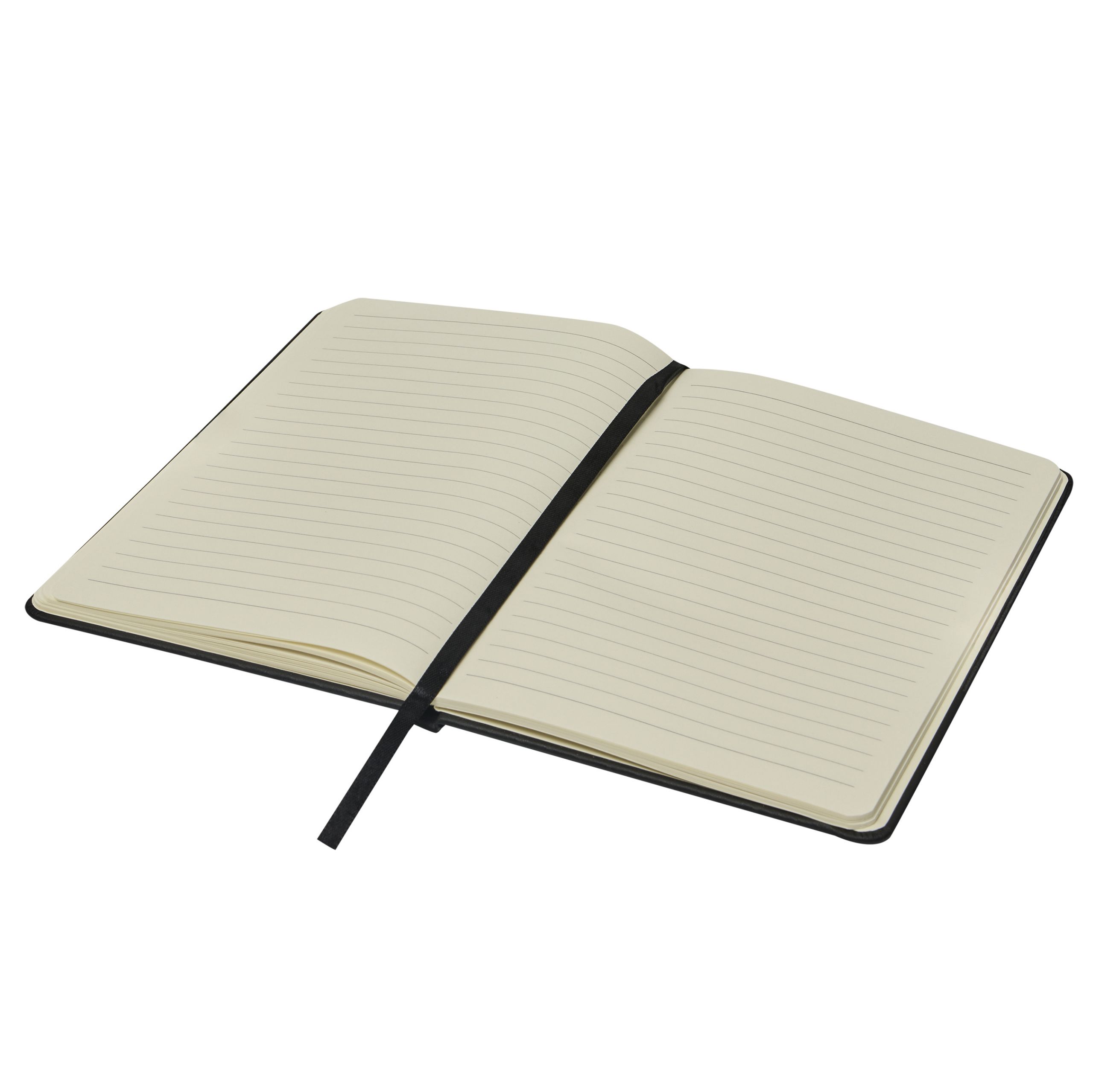 Notatnik DEPECHE, format A5. Posiada zaokrąglone rogi, gumkę do zamykania i zintegrowaną zakładkę. Ma 80 stron w linie o gramaturze 70 g/m².