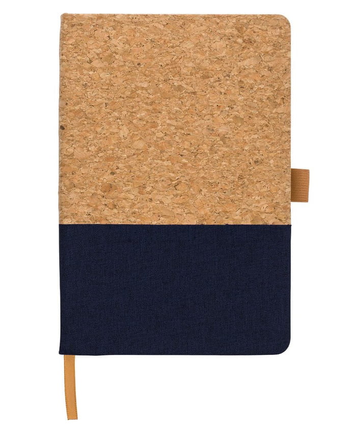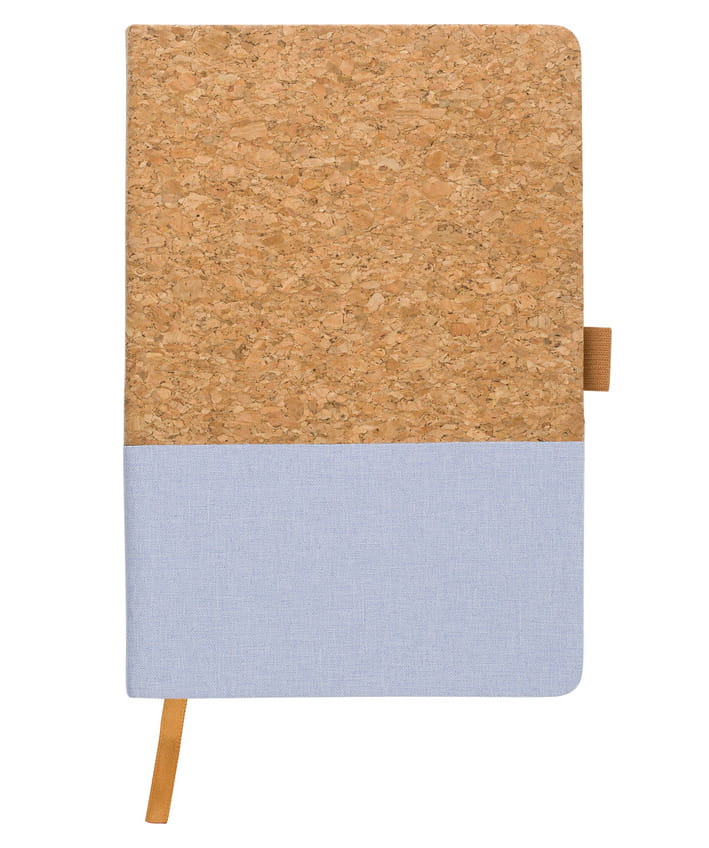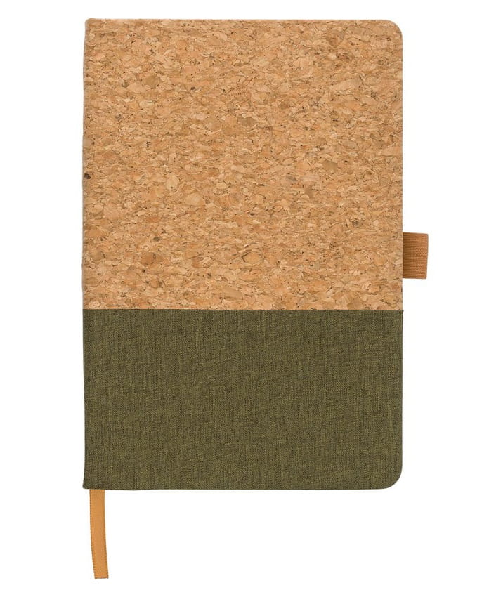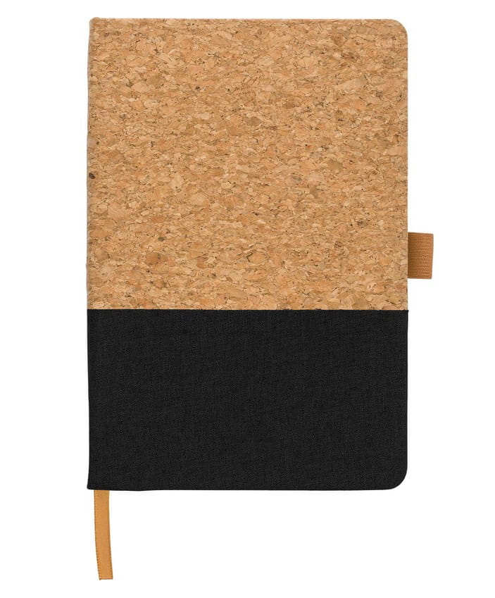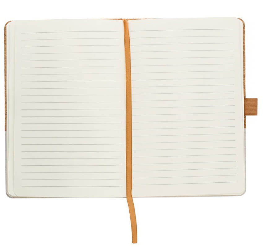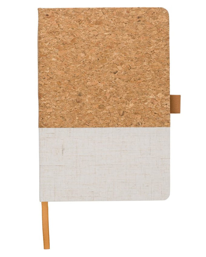 Notatnik A5 (80 kartek w linie), twarda okładka wykonana z korka i bawełny, miejsce na przybory do pisania, tasiemka zakładkowa