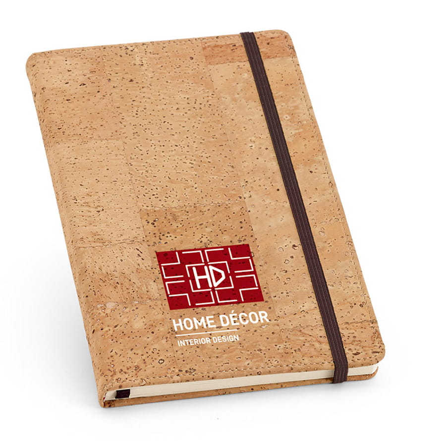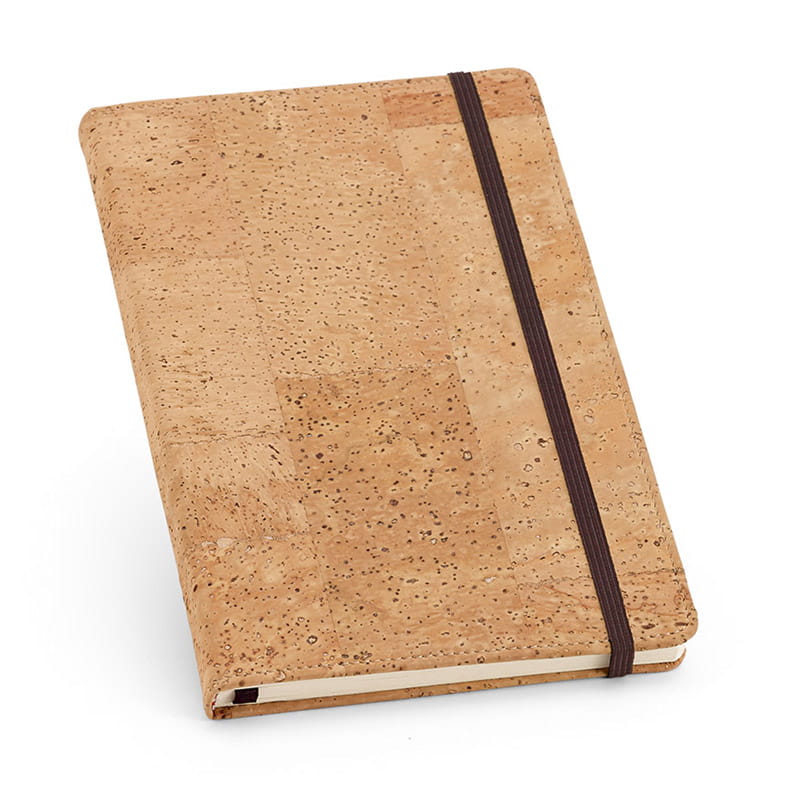 Notes A5 z okładką z korka, posiada 160 gładkich stron w kolorze kości słoniowej, zakładkę ze wstążki i gumkę. Dostarczany w etui z materiału non-woven.