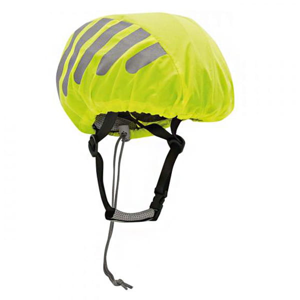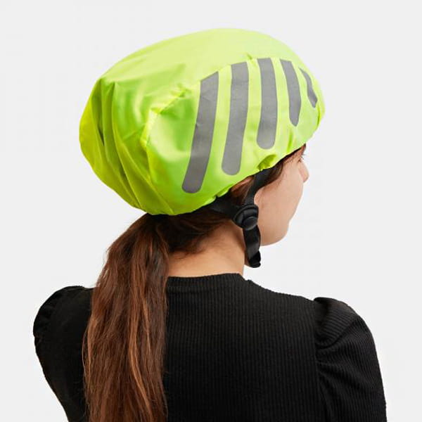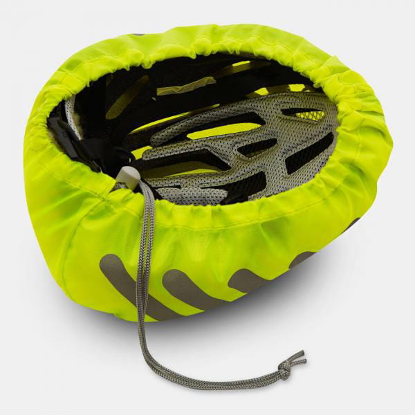 Ochraniacz przeciwdeszczowy na kask rowerowy: wodoodporny i wiatroszczelny, z odblaskowymi paskami, pasuje do prawie wszystkich rozmiarów kasków dzięki sznurkowi ze stoperem.