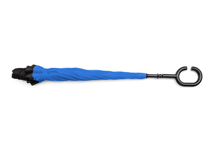 Rewolucyjny parasol REVERS wyróżnia się nie tylko kształtem ale też funkcjonalnością. Poprzez odwrócenie ruchu zamknięcia parasola woda, która osadziła się na czaszy pozostaje wewnątrz. Dzięki temu użytkownik oraz otoczenie pozostają suche. Dodatkowo parasol wyróżnia się charakterystyczną rączką, która jest bardzo przydatna w sytuacjach gdy trzeba wykonać czynność obiema rękoma. Dwustronna czasza wykonana z poliestru 190T.