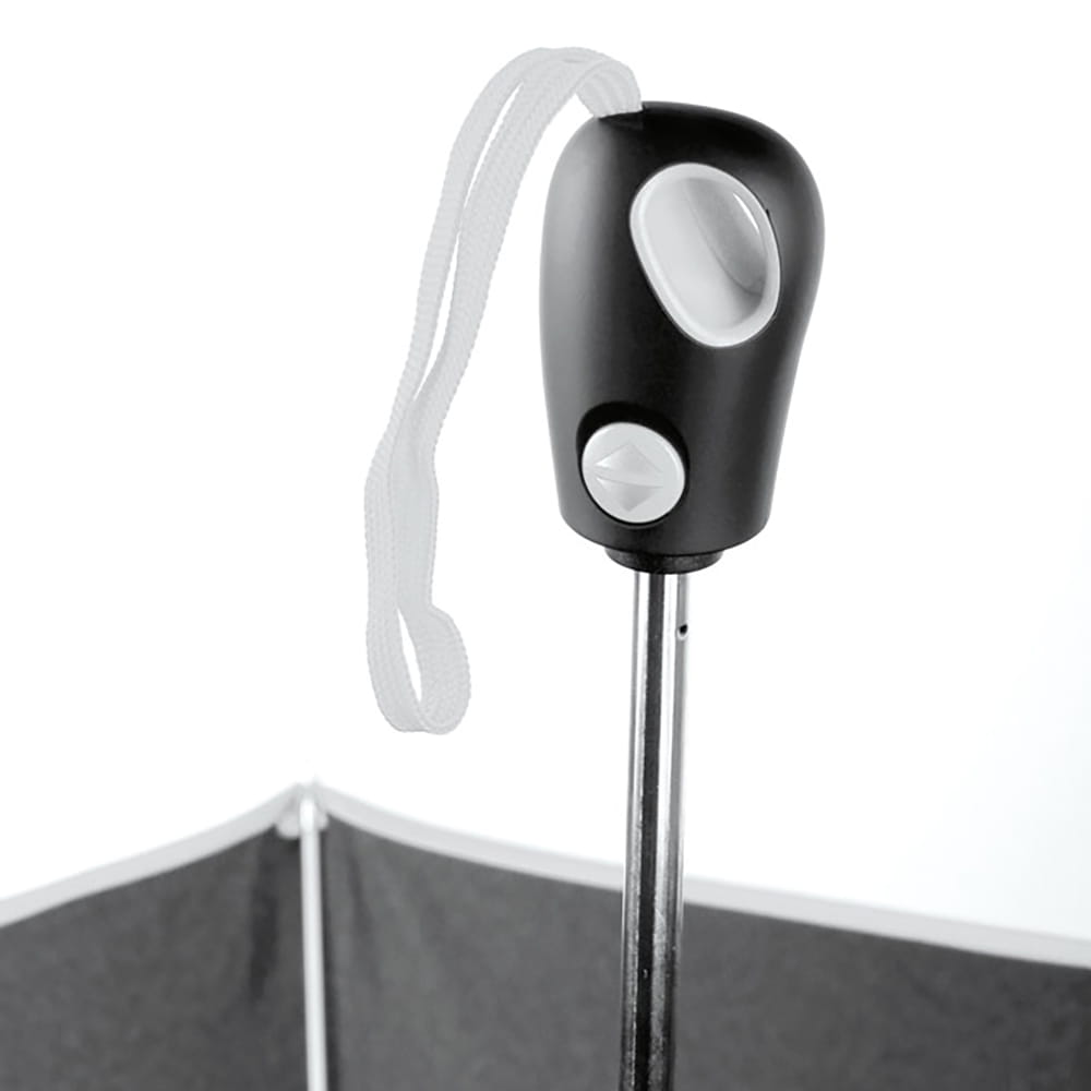 Parasol składany wykonany z materiału pongee 190T, z automatycznym otwieraniem i zamykaniem. Parasol ma gumowany uchwyt i kolorowe detale. Dostarczany w etui.