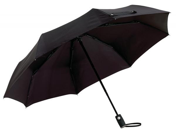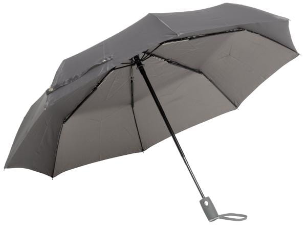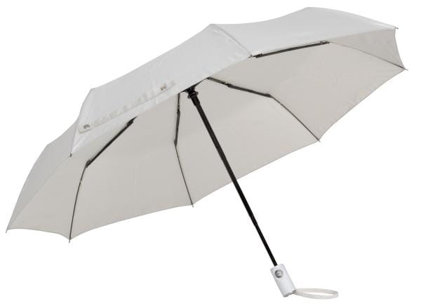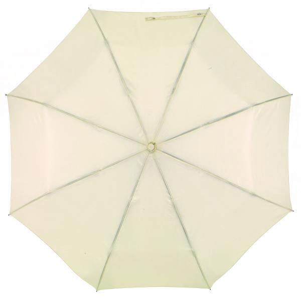 Automatyczny, wiatroodporny, składany parasol ORIANA z dopasowanym kolorystycznie pokrowcem: 3 częściową metalową laską, z szynami z metalu, plastiku i włókna szklanego, gumowany uchwyt z dopasowanym kolorystycznie paskiem na nadgarstek, poszycie z poliestru pongee z pokrowcem o strukturze plastrów miodu, z zapięciem na zatrzask.