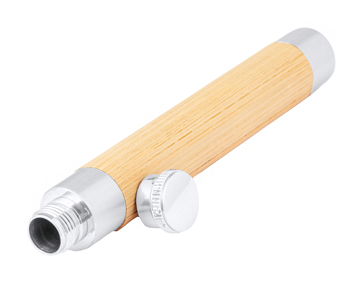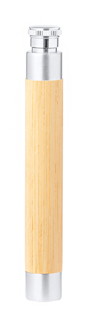 Piersiówka ze stali nierdzewnej z nakładką bambusową, 45 ml.