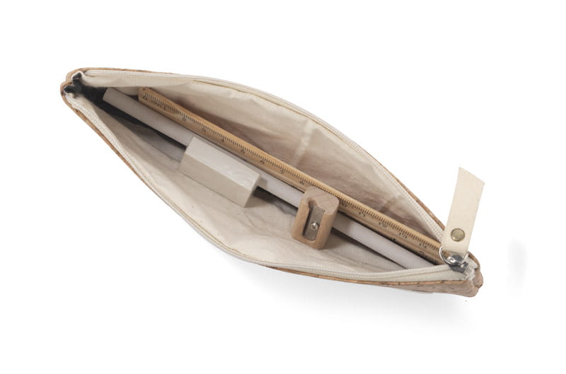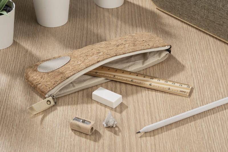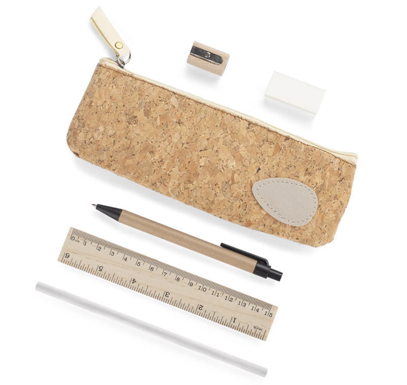 Piórnik z wyposażeniem FUTURE to zgrabna i poręczna wersja etui, zawierającego podstawowe przybory biurowe, które również wykonane są w minimalistycznym designie: długopis, ołówek, gumkę, temperówkę i linijkę. Piórnik wykonany jest z korka, co doskonale wpisuje się w ekologiczne trendy.